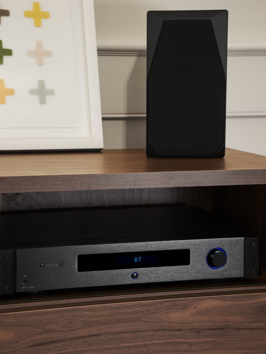 Vi testede for nylig receiveren AT-100. Denne gang gælder det PT-100, der er en forforstærker med indbygget radiomodtager – nogle gange omtalt som en preceiver. Der skal altså en løs effektforstærker eller et sæt aktive højttalere til, for at man kan få lyd ud.