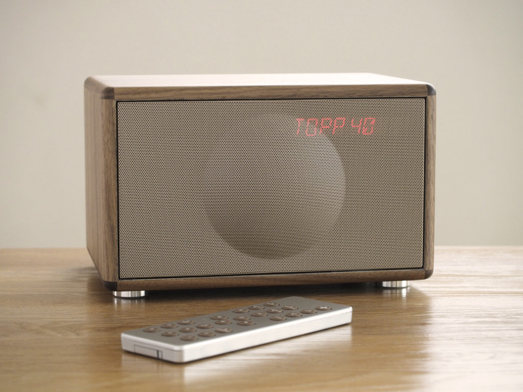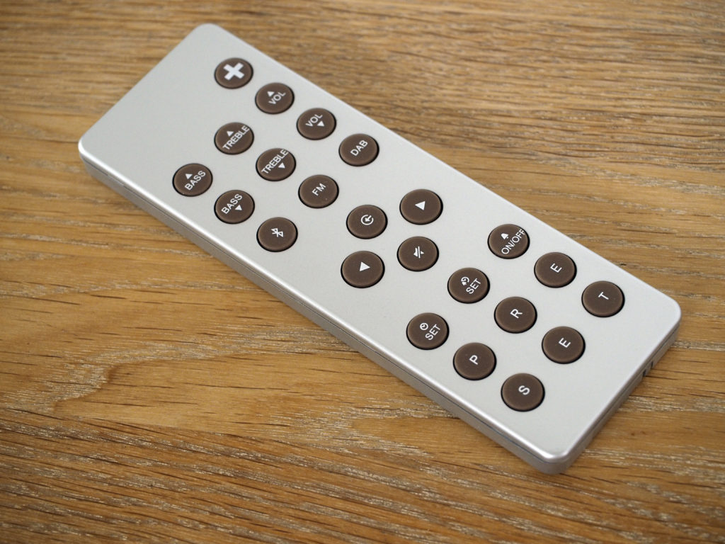 Classic S betjenes ganske enkelt med den medfølgende fjernbetjening eller på touch-fladen på toppen. Den er markeret med brændemærkelignende symboler præget ind i fineren. Hvis du vælger at placere den i soveværelset, kan den indbygget alarm være nyttig.