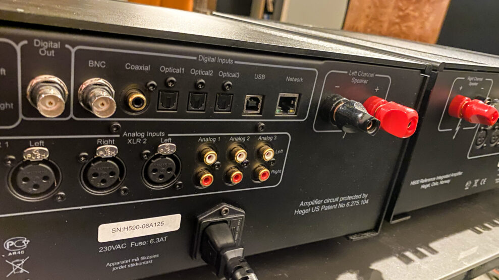 Hegel H590 har helt ordinære kontakter på bagsiden. Foto: Geir Gråbein Nordby
