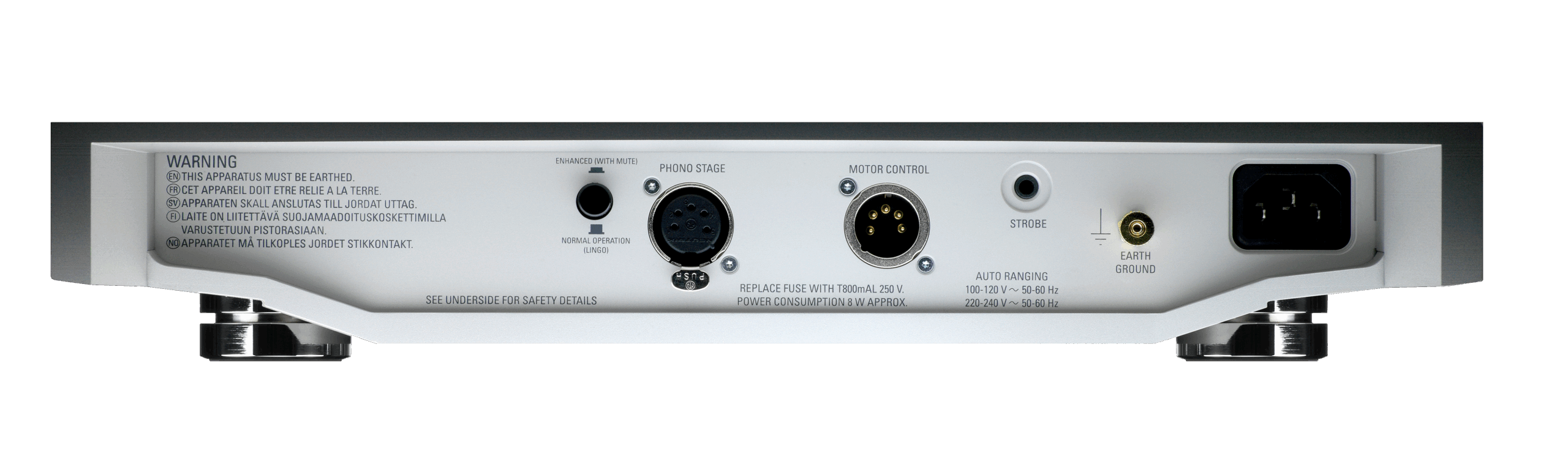 Den eksterne Radikal-strømforsyning – til både pladespiller og phono-trin – kontrollerer og tallerkenens rotation med en digital motorstyring (og en sensor under tallerkenen). Som holder hastigheden konstant, når tallerkenen har nået den valgte hastighed.