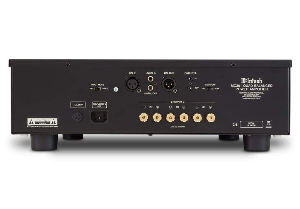MC301 leverer 300 watt, for her går al effekten til én, ikke to kanaler som på MC152. Teknisk set er de helt ens med samme afbalancerede topologi og McIntoshs autoformere, der gør forstærkeren mindre følsom over for højttaleres impedansvariationer.