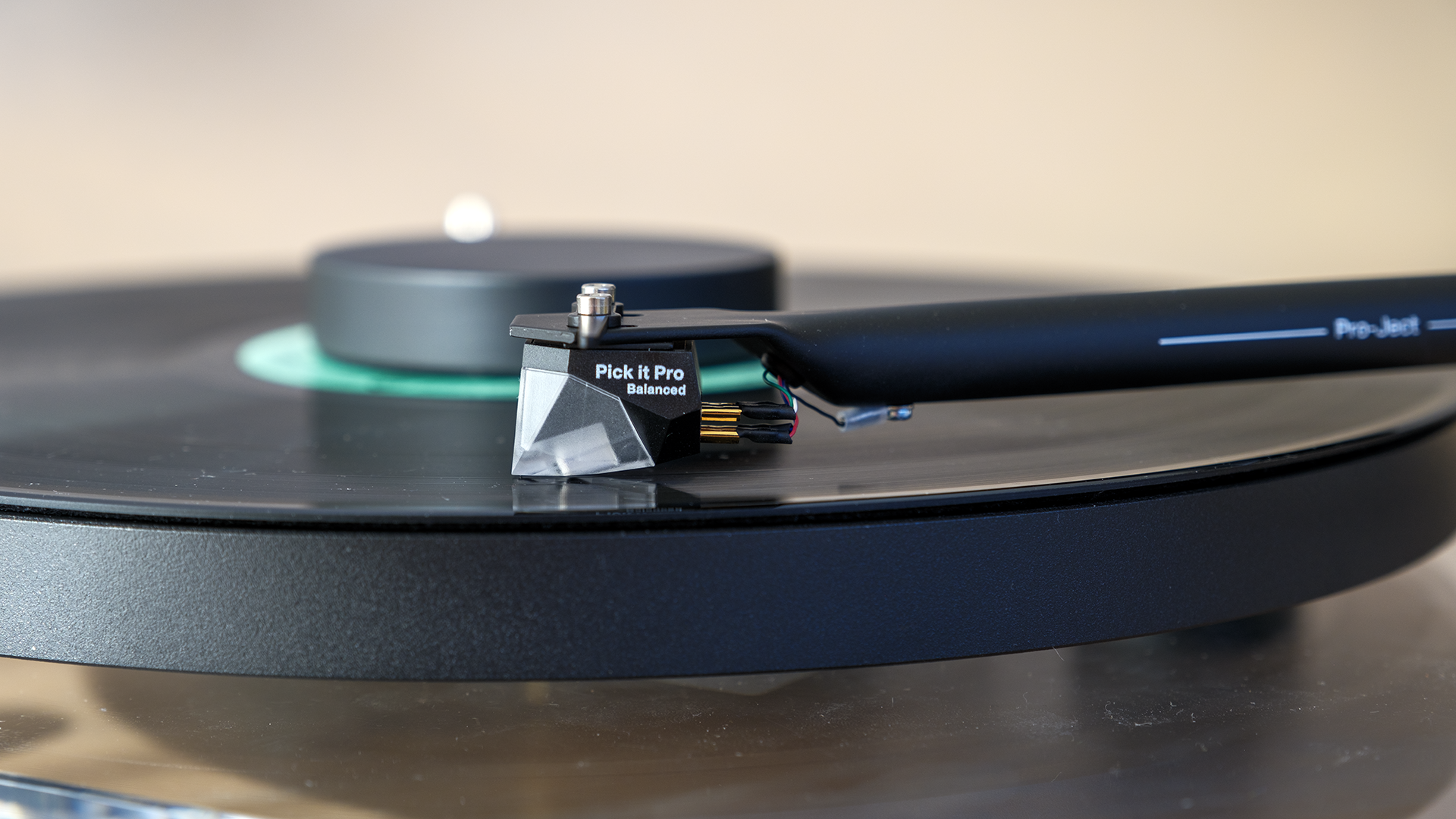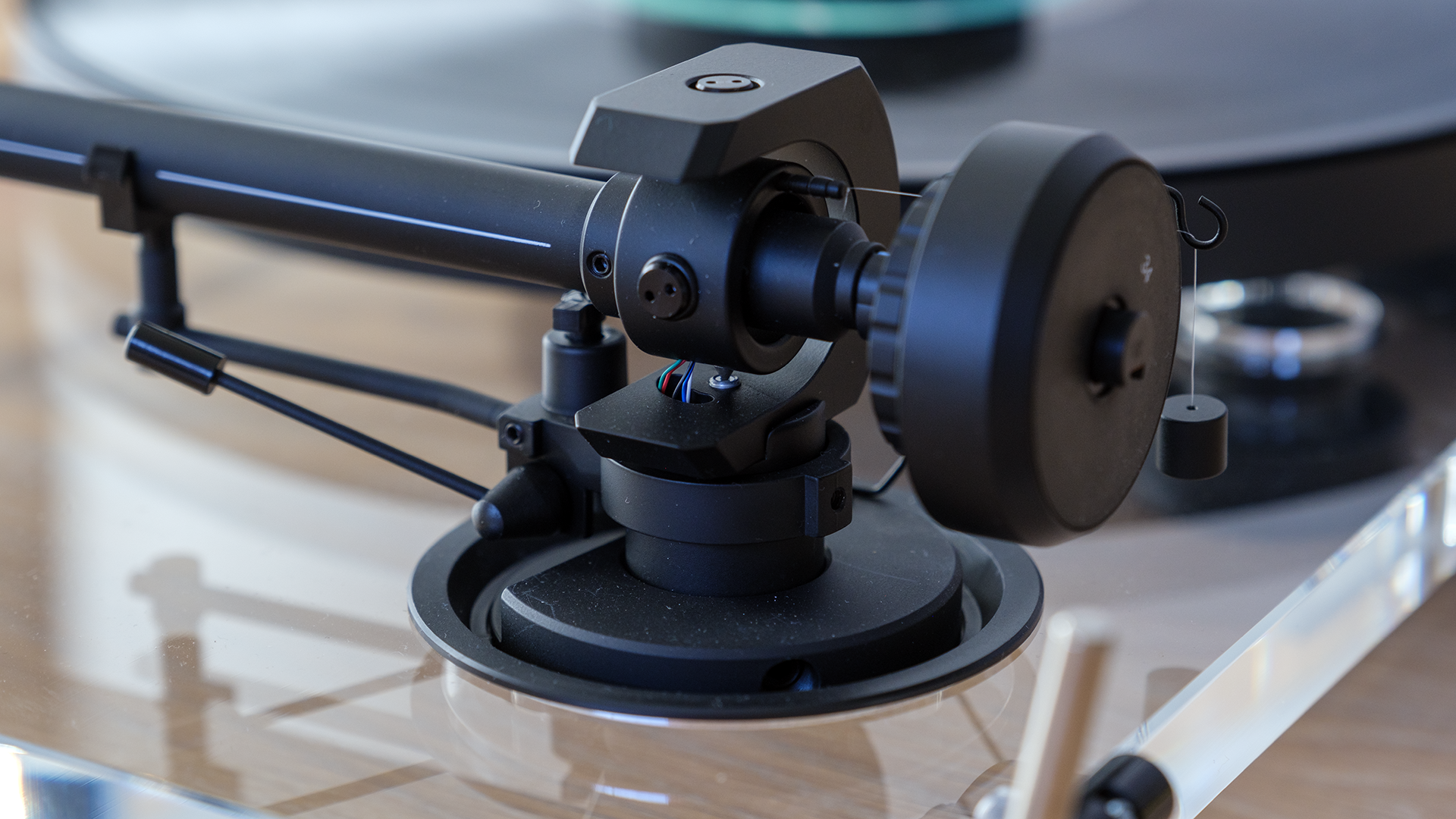 Pickup’en er allerede monteret og det er en Pick It Pro Balanced, hvilket betyder, at den er koblet hele vejen til et fem-pins DIN-stik under armen. Hvis man bruger et balanceret kabel derfra til et phonotrin med balanceret indgang, sikres jordforbindelsen hele vejen frem til forstærkeren.