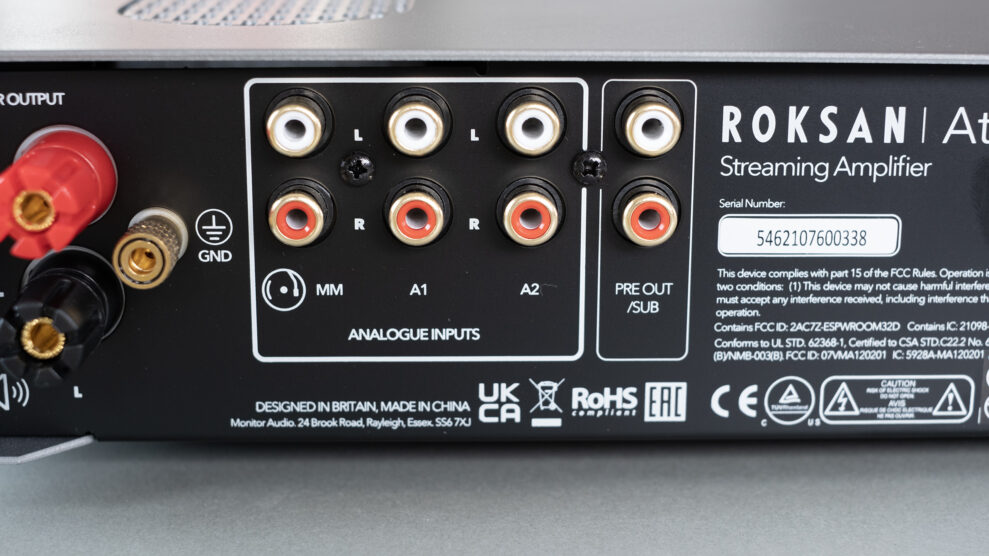 Midt i dette felt i premiumklassen finder vi Roksan Attessa Streaming Amplifier, som også ligger i samme prisklasse. Den er lidt slankere, men lige så godt udstyret med flere analoge og digitale indgange, pladespillerindgang til MM-pickup og som navnet antyder, streaming. Den har lidt færre analoge tilslutninger, men flere digitale indgange, og den mangler HDMI-indgangen til TV-lyd, som Marantz Model 40n har på bagsiden.