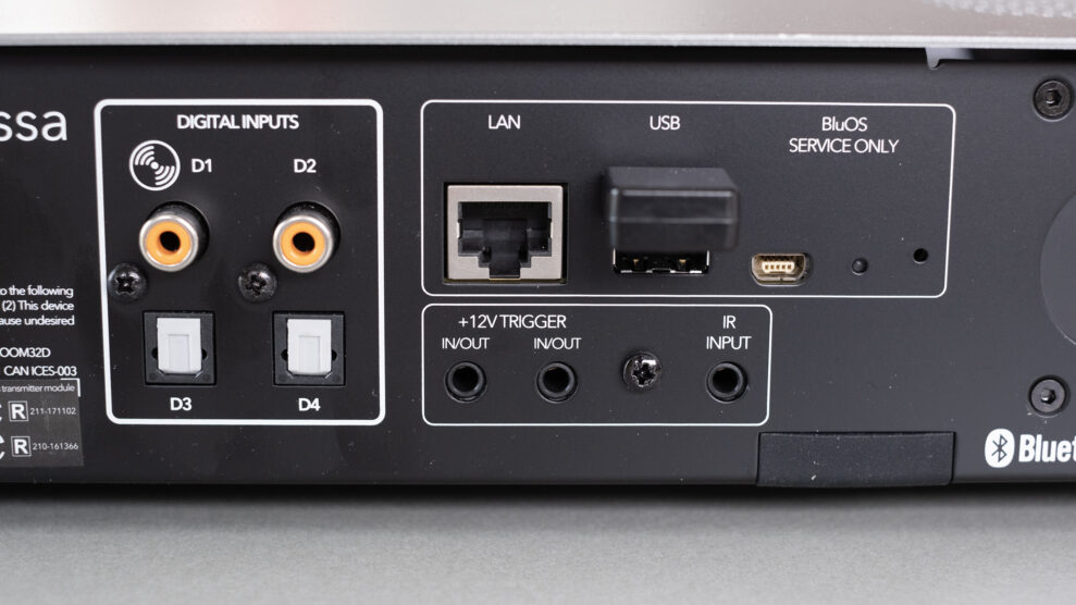 Der mangler måske en HDMI-indgang, men det er det eneste, vi savner i Attessa Streaming Amplifier. Den indbyggede digitale konverter har to koaksiale og to optiske indgange med understøttelse af 24-bit/192kHz-filer. DAC’en understøtter langt de fleste digitale musikformater. Også MQA-filer, som man finder på Tidal.