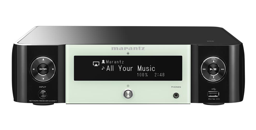 Den kompakte Marantz CR511 er nem at sætte op, især hvis du har en iPhone eller iPad. Slut sidstnævnte til USB-indgangen på fronten med ledning og tryk på iOS-knappen på bagsiden. Dermed bekræfter du på mobilen, at det tilsluttede trådløse netværk skal deles, og – vupti! – menusystemet taler flere sprog, med svensk som det, der er tættest på.