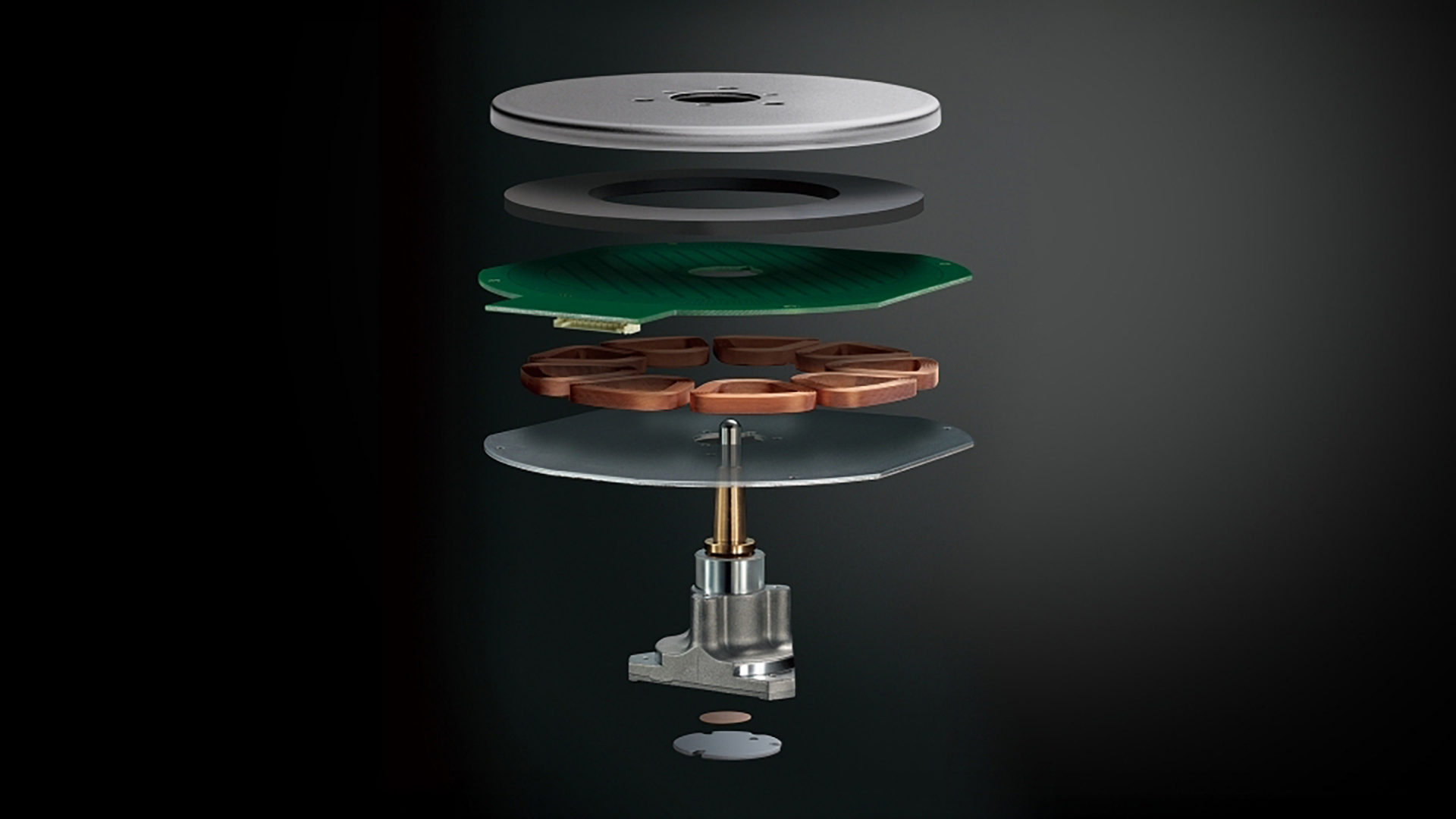 Pladespilleren er som nævnt direktedrevet, og den støbte aluminiumstallerken på 1,26 kg styres af en digital motorstyring med en børsteløs motor monteret på undersiden. En plademåtte i stiv filt dækker tallerkenen, og under plinten sidder fire højdejusterbare fødder med gummidæmpning.