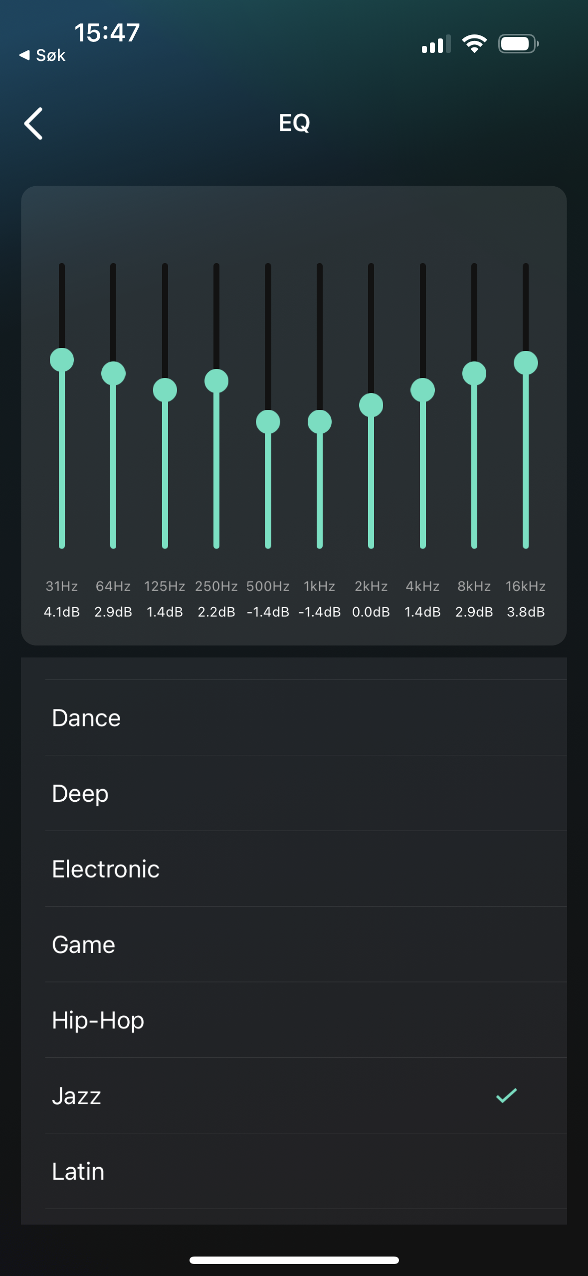 App’en har nemlig en 10-bånds grafisk EQ og parametrisk EQ (på vej), som du selv kan lege med, eller du kan vælge en af 26 (!) forudindstillinger.
