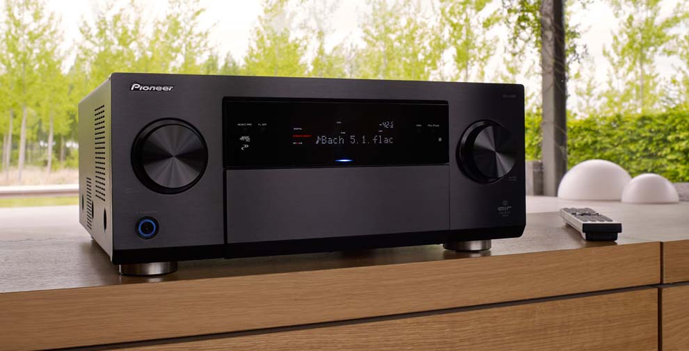Pioneer-receiveren har ni forstærkerkanaler og kan f.eks. byde på to Atmos-kanaler sammen med et 7.1 eller 7.2 højttaler-setup (7.1.2 eller 7.2.2). Hvis du nøjes med fem højttalere på gulvet, kan fire Atmos-højttalere installeres i loftet (5.2.4) for endnu mere effektiv 3D-lyd. Tilslut en ekstra stereo-effektforstærker, og du kan udvide til 7.2 plus fire Atmos-højttalere (7.2.4), eventuelt 9.2 plus to (9.2.2).