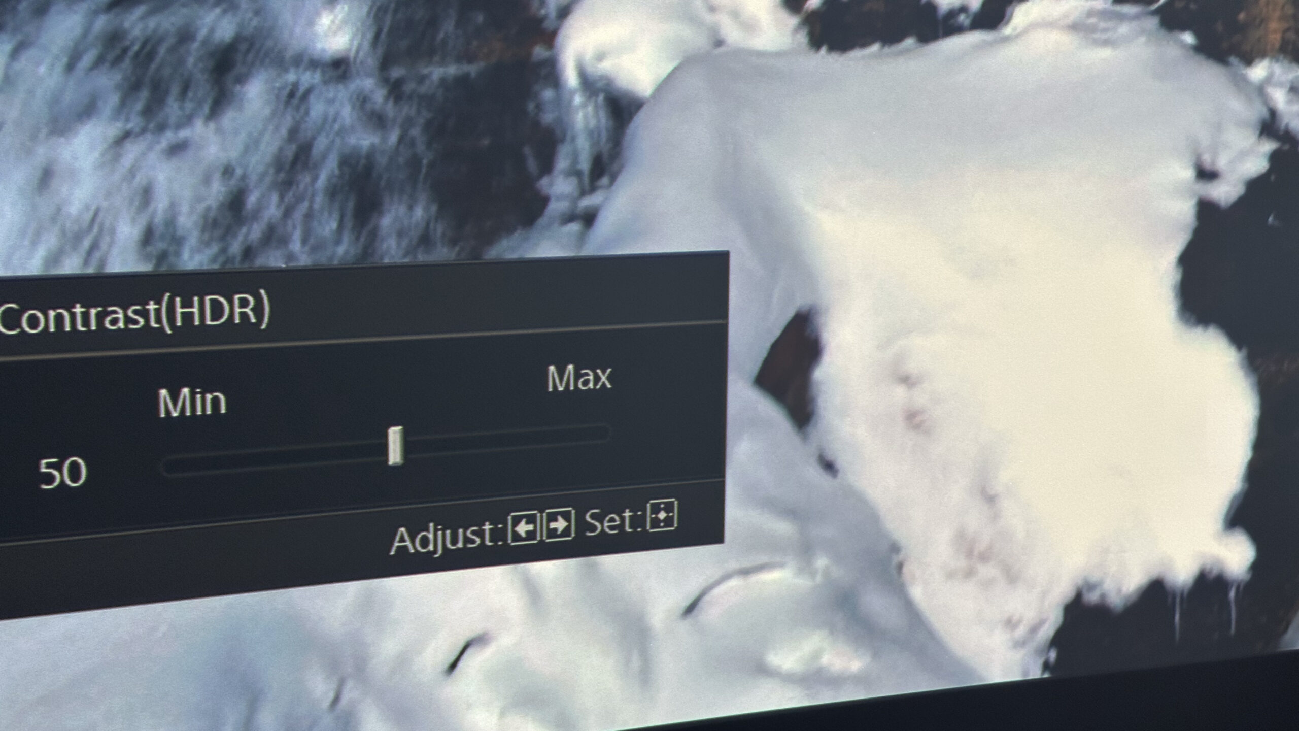 Men der er et men. Sonys tone-mapping er ikke så god som annonceret. For hvis man skal have en normal lysstyrke på HDR-indhold, vil man skulle op mod 60 procent i HDR-kontrast i menuen. Dette justerer lysstyrken i HDR-indhold, ikke sortniveauet, som kan måske skulle tro. Med kontrasten sat til 60 har billedet generelt god lysstyrke, og det meste ser godt ud. Men HDR-effekterne brænder ud. Jo mere kontrasten øges, desto mere brænder det ud i hvidt.