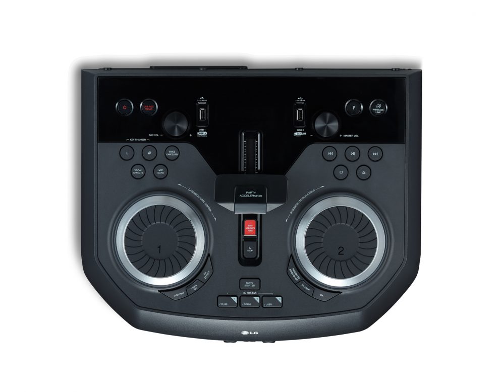 LG følger tydeligvis Sonys eksempel med dette bæst af en festhøjttaler, hvor alt er maksimeret. Hvilket ikke mindst kommer til udtryk ved, at den er nogle centimeter større på alle ledder og hele 15 kilo tungere! Heldigvis er den udstyret med et gedigent håndtag og store hjul, så man ikke brækker ryggen.