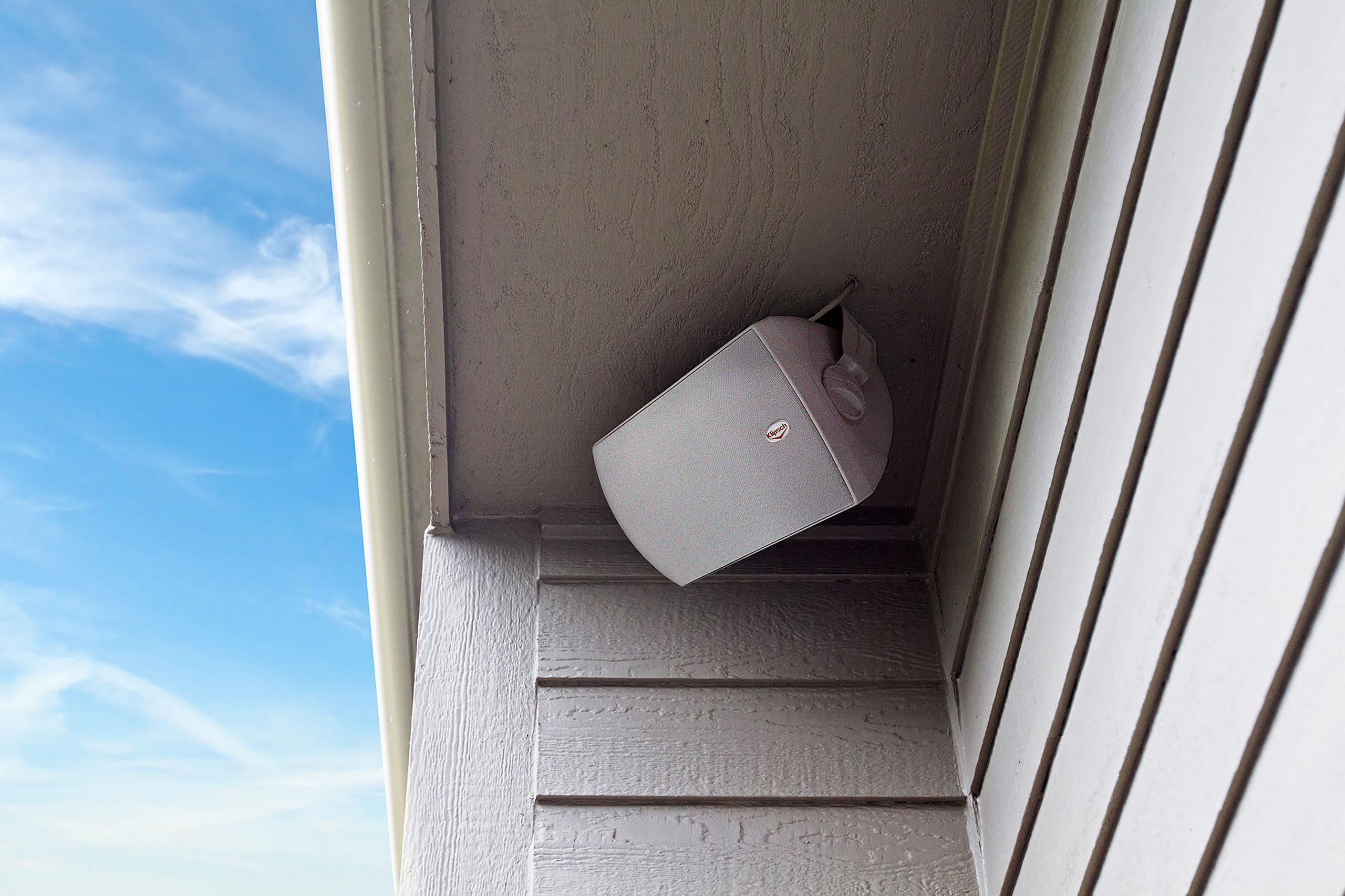Et C-formet stålbeslag holder højttaleren fast, og den kan let vinkles, så den peger mod sofaen eller havemøblerne. Her får man skrueterminaler i stedet for klemmeterminaler, og kvaliteten er generelt rigtig god i alle led. Bag den rustfri front sidder en 5,25 tommers bas og Klipschs velkendte Tractrix-horndiskant.