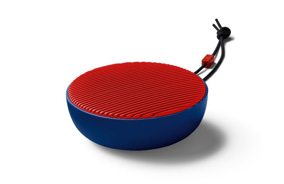Højttaleren er lille nok til at holdes i hånden og har en praktisk strop til at hænge den på en krog eller en taske. Og den er sprøjtesikker, så man ikke behøver at gå i panik, hvis det begynder at regne.