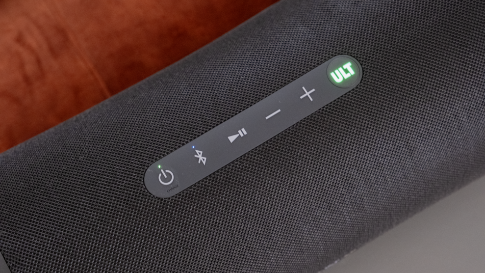 Højttaleren i Sonys Ultimate-serie har en ULT-knap på toppen, som aktiverer to forskellige bas-EQ’er. ULT 1 giver dybere bas, mens ULT 2 dæmper den dybe bas til fordel for mere punch i bassen.