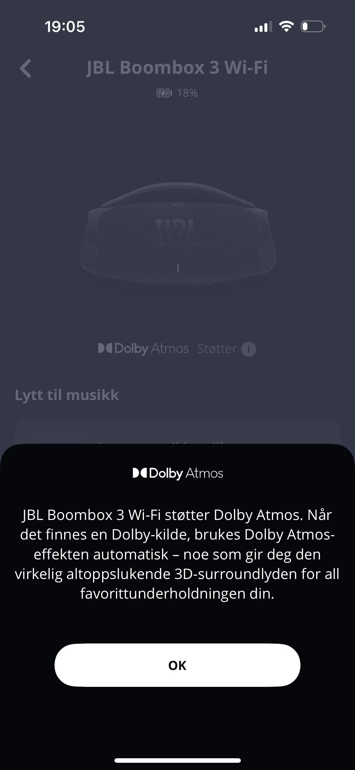 Men den kan også noget, som ingen andre højttalere i denne test kan. JBL-højttaleren understøtter nemlig Dolby Atmos, som aktiveres i JBL One-appen, som også kan styre højttaleren, og hvor du også kan foretage simple lydindstillinger, såsom justering af bas, mellemtone og diskant.