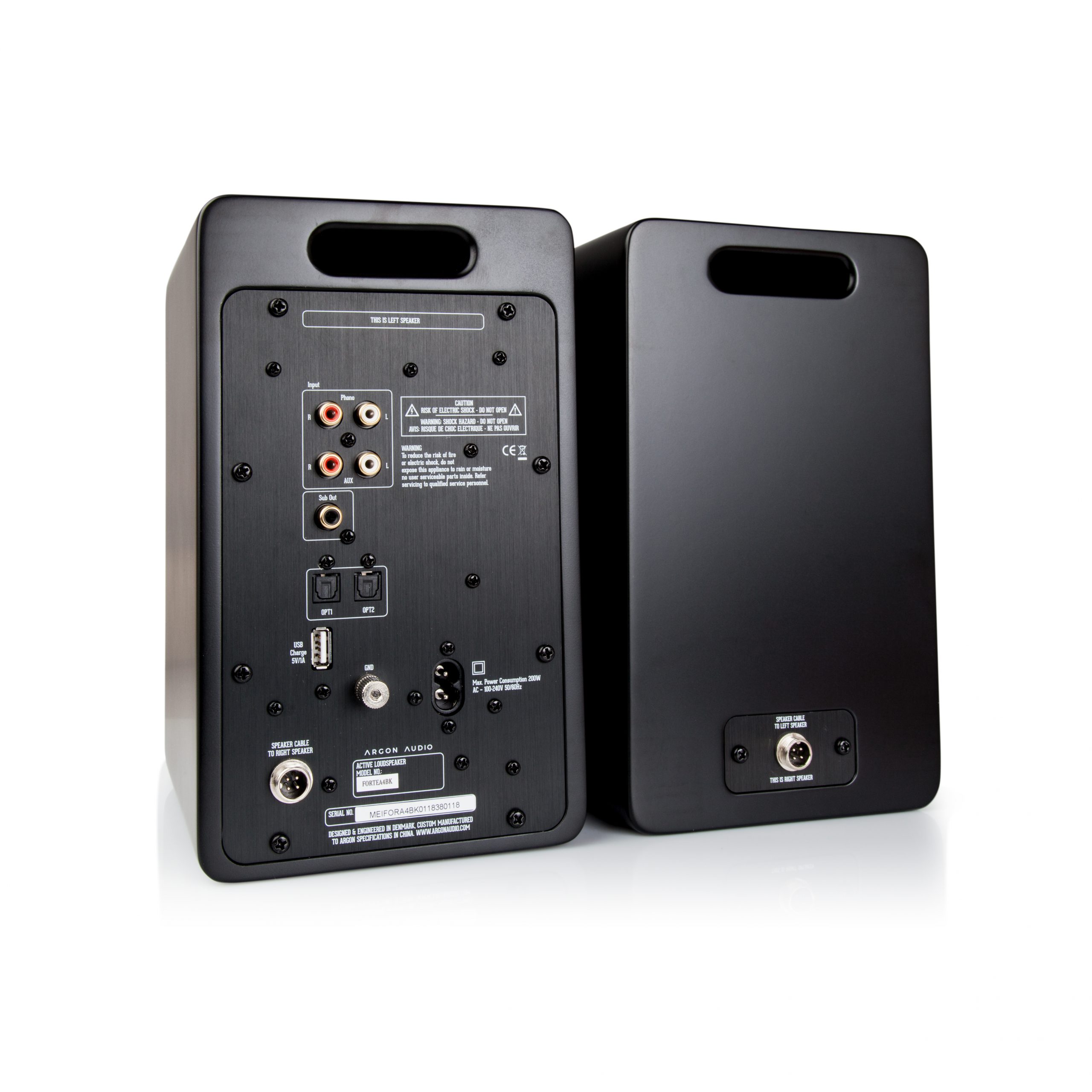 Til en pris omkring tre tusind kroner for et sæt højttalere inklusive forstærkere og trådløs forbindelse er det svært at stille krav. Men det kan Argon Audio Forte A4 godt klare, at man gør. I kraft af de mange indgange kan de være hjertet i et komplet stereoanlæg med plads til både digital lyd fra TV og spilkonsol, analoglyd fra f.eks. en CD-afspiller og – som kronen på værket – pladespillerindgang.