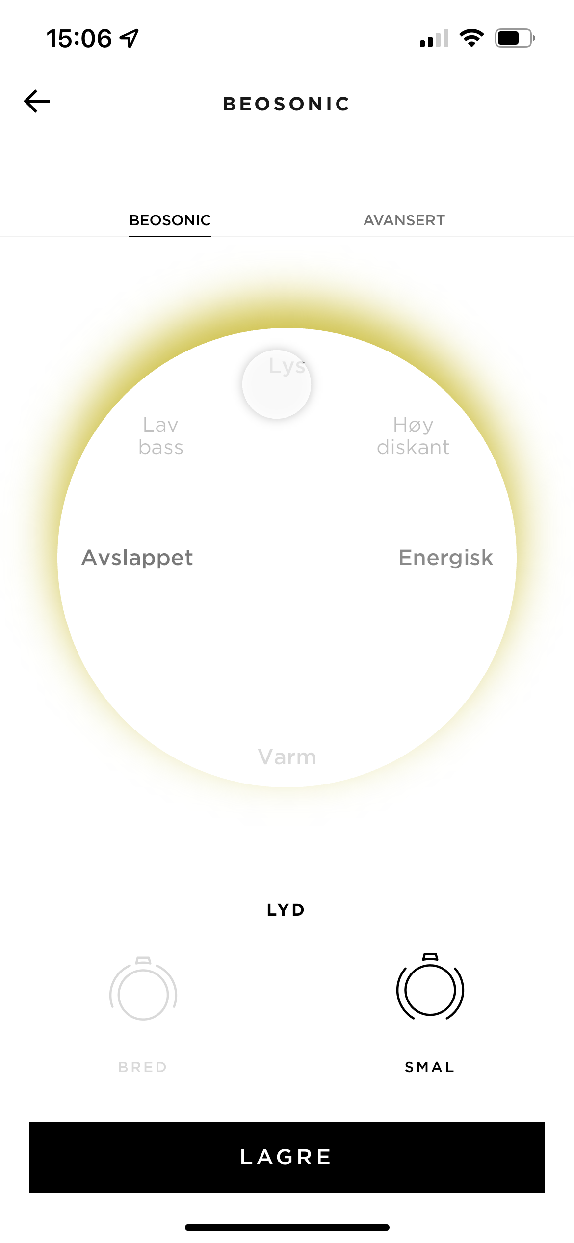 Bang & Olufsen har indbygget flere nyttige funktioner, der styres af en DSP. Den ene er aktiv rumkompensation (ARC), som jeg antydede tidligere. Den aktiveres i app’en og udsender så et testsignal, som bruges til at justere basgengivelsen i rummet. Den kontrolleres også af noget, som kaldes Advanced Adaptive Bass Linearization (ABL), og som sikrer, at bassen ikke bliver overdrevet kraftig, når man spiller højt.