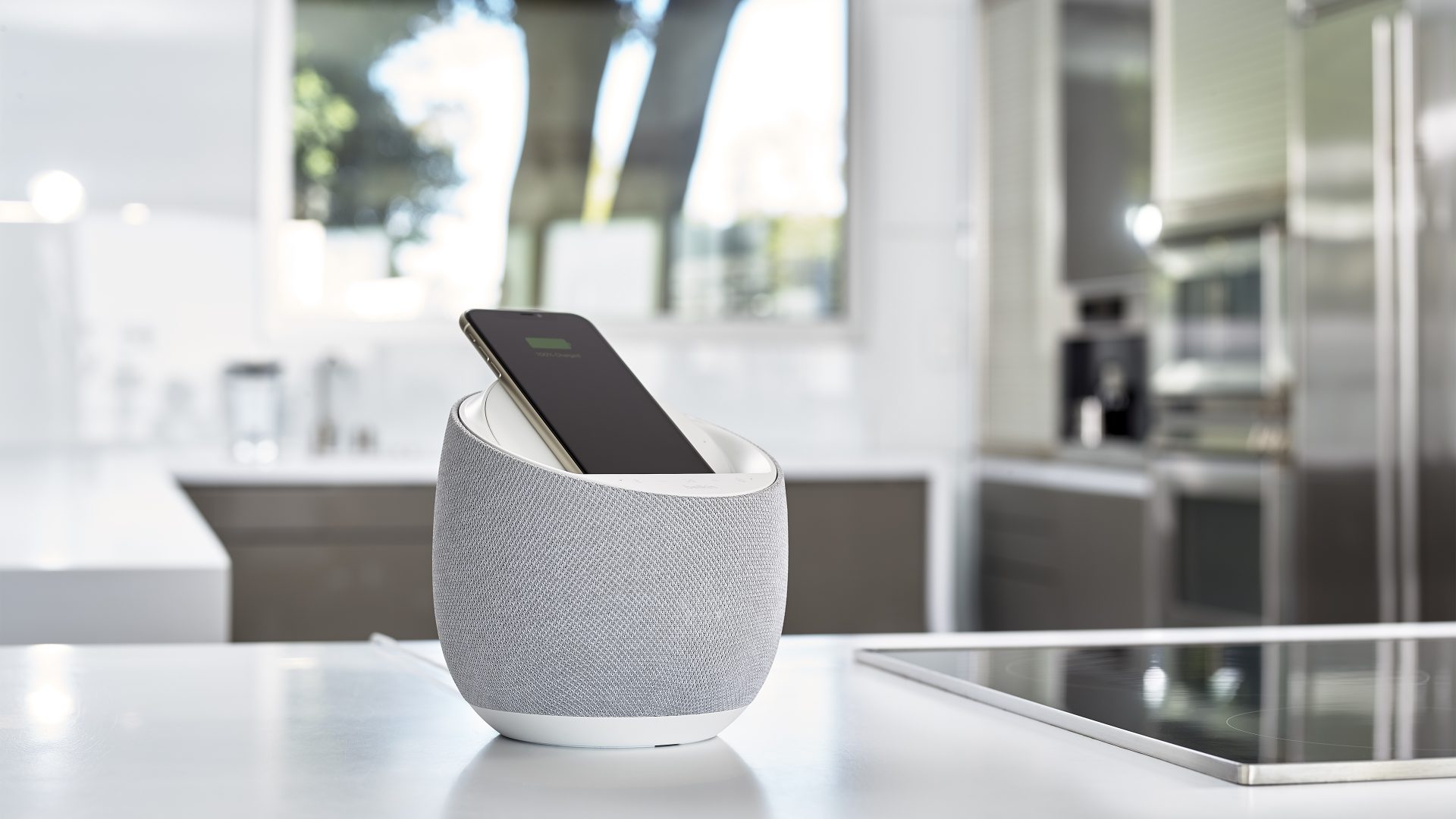 Belkin Soundform Elite er en lille, rundmavet enhed på omkring 16 cm på hver led. En skrå hylde på toppen indbyder til at parkere mobilen der. Hvis du har en nyere iPhone, Samsung Galaxy, LG eller Sony Xperia, oplades den trådløst imens. Fikst!