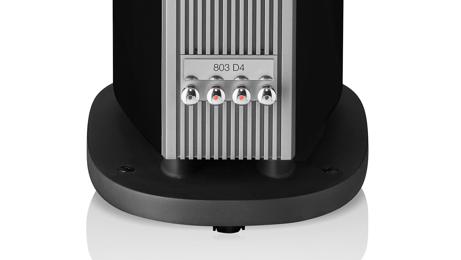 I D4-udgaven har kabinettet endnu bedre frakobling fra baskabinettet end før for at opnå endnu renere lyd. Sammen med den 13 cm store resonansannullerende Continuum-enhed, ophængt i en såkaldt Biomimetic Suspension, som reducerer uønskede lufttryksforskelle, lover Bowers & Wilkins “den mest realistiske mellemtonegengivelse nogensinde”.