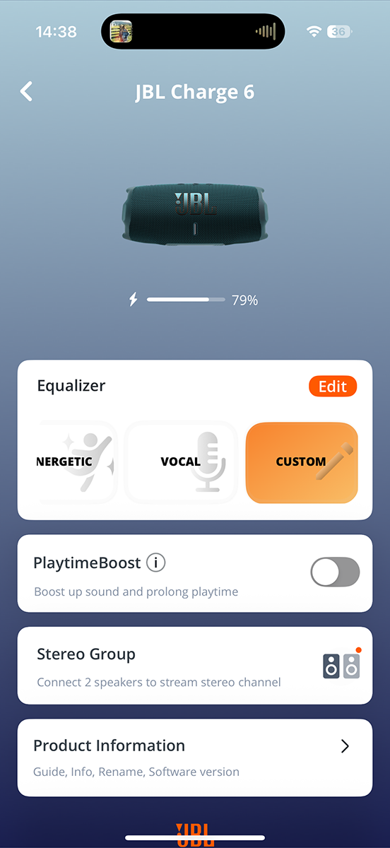 JBL-app’en er den bedste på markedet, og med lidt eq-tuning fik jeg en lyd, der også fungerede til akustisk musik som jazz og klassisk. Det er næppe den foretrukne kost for målgruppen for en Charge 6, men de bør i det mindste vide, at der ikke findes bedre og mere lyd for pengene, som markedet ser ud i skrivende stund.