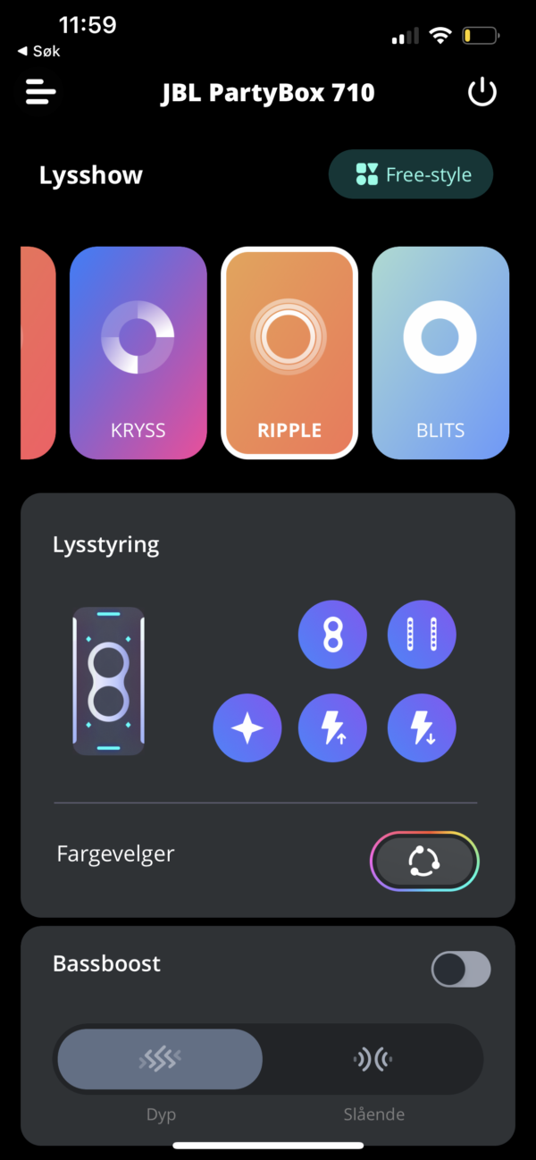 Det er ikke en højttaler, man parkerer ved siden af TV’et eller nyder lidt dæmpet baggrundsmusik på. PartyBox 710 vågner ikke til live, før man skruer ordentlig op. Så kan man både høre og mærke musikken, der lige så godt kan være klassisk som pop eller rock. Okay, klassisk musik er måske ikke det mest oplagte, men det holder rigeligt, så længe man ikke finlytter.