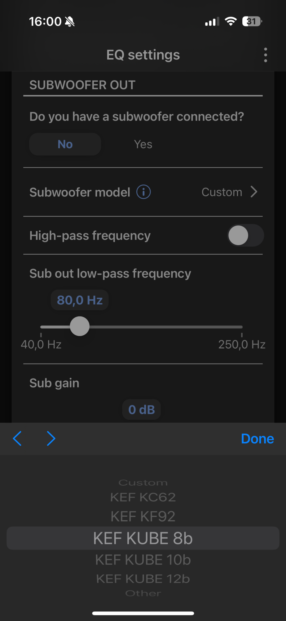 En fjernbetjening er inkluderet, men du kan streame direkte fra din mobiltelefon uden at bruge fjernbetjeningen. Med KEF Connect-app’en kan du gemme indstillinger og tilføje dit Spotify- eller Tidal-abonnement, streame online-radio og justere bas og diskant og fortælle højttalerne, hvad der er venstre og højre kanal og om den er placeret på en hylde eller på et vægstativ. Højttalerne kan bruge de samme stativer, som KEF laver til LSX II.