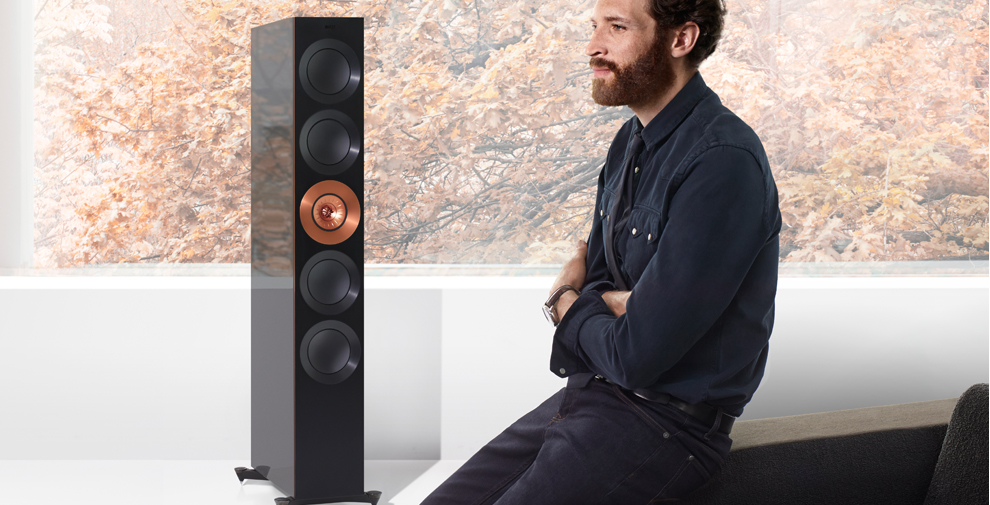 Prikken over i’et i de 140 cm høje højttalere er den seneste udgave af KEF’s koaksiale Uni-Q element med en 25 mm ventileret alu-diskant placeret i aksen på den 125 mm store mellemtone, også den med alu-membran. Uni-Q elementet har små ribber på mellemtonen og en diffraktionslinse foran diskanten, og er monteret helt ude i kanten af den tykke frontplade for bedst mulig kontrol og ensartet spredning af frekvenser over 320 Hz (2,4 kHz for diskanten).