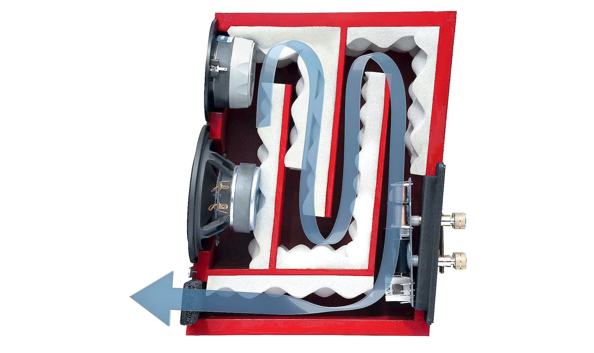 Dette er ikke en traditionel basrefleks, men en transmissionslinje. Det gælder naturligvis både de aktive og passive modeller i serien, og for den mindste 21i er transmissionslinjen – dvs. den kanal, som bassen ledes igennem inde i højttaleren – hele 172 cm lang.
