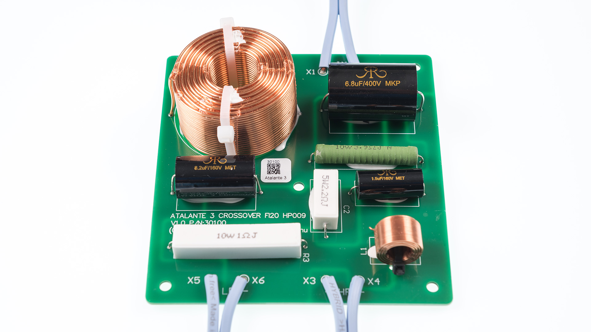 Delefilteret er et absolut nydeligt 12 dB/oktav filter med præcis så mange komponenter, som der er brug for, men ikke flere. Og delene er i god kvalitet. Kablingen er Van Den Hul Skyline Hybrid. Det er med andre ord et par højttalere, der tåler at blive kigget efter i sømmene.