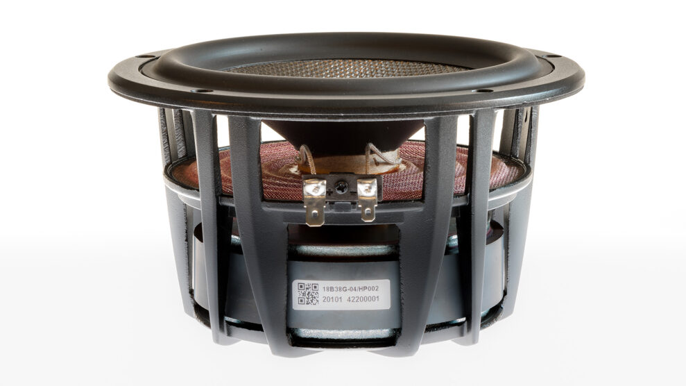 Bas/mellemtoneenheden er på syv tommer og fremstillet i et sortbrunt, vævet fibermateriale, der viser sig at være fremstillet af vulkansk basalt, der er smeltet og spundet. Membranen er en sandwichkonstruktion med filt på bagsiden. Enheden er også udstyret med en af de største og mest potent udseende magneter, jeg har mødt på en syvtommers.