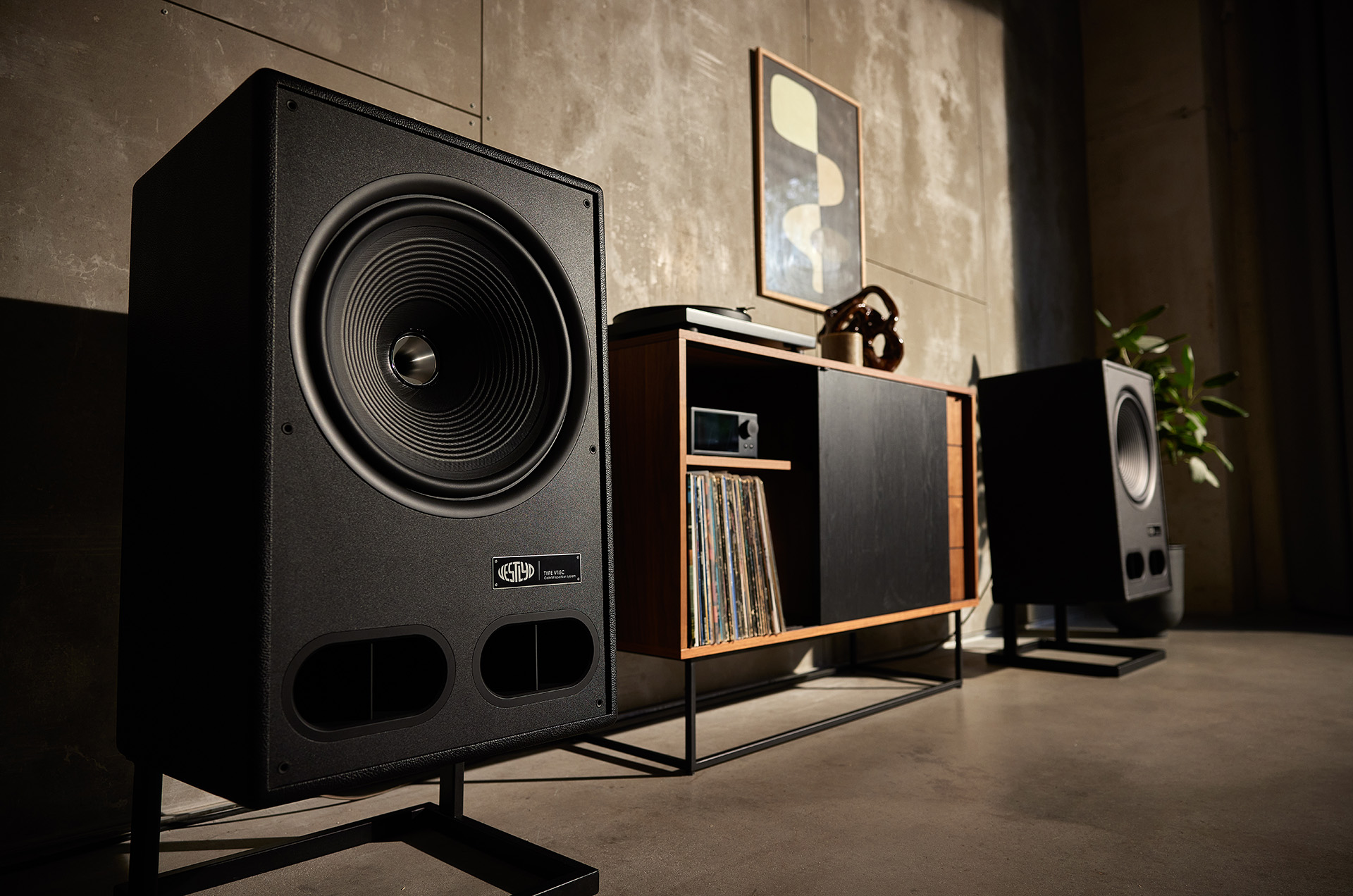 Vestlyd V15C er store! Med 74 cm i højden, 46 cm i bredden og 42 cm i dybden, er de umulige at overse. Og kabinettet i nopret sort nappa gør dem endnu mere iøjnefaldende. Hvilket ikke behøver at være en ulempe. For her er tale om højttalere, der kræver at blive lagt mærke til!