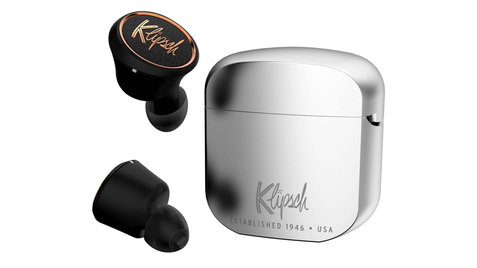 Det første, jeg lægger mærke til, er det elegante lade-etui i aluminium, der giver associationer til de berømte Zippo-lightere. Bare lavere og væsentlig tykkere. Det er det flotteste etui, jeg har set til denne type hørepropper, med bløde, glatte kurver og en meget tillidsvækkende vægt. Nydeligt. Klipsch topper det med at tilbyde personlig gravering, hvis man bestiller fra deres website.