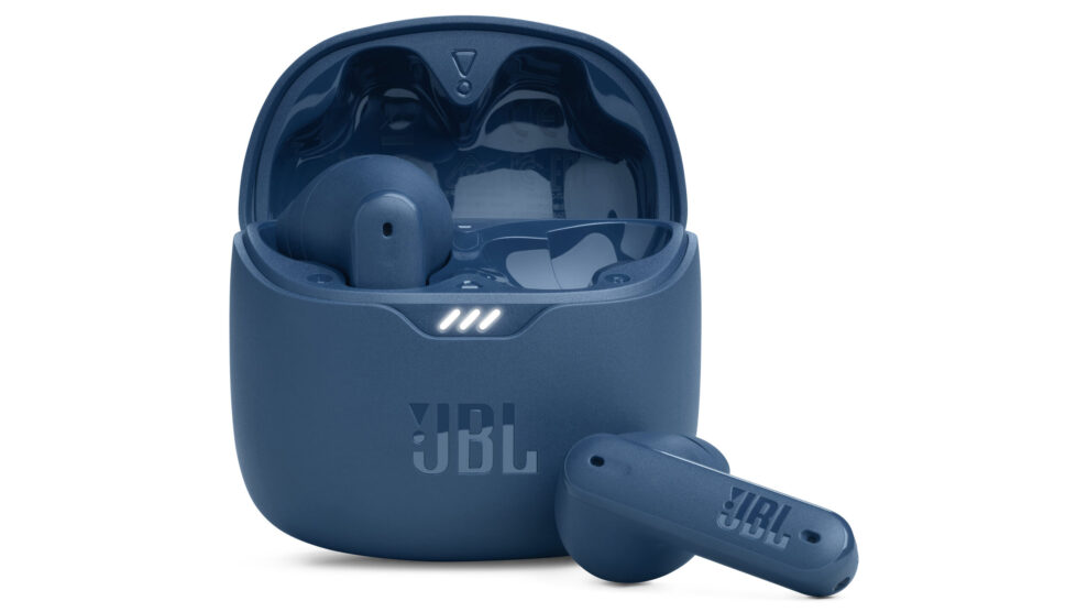 Ligesom Jays t-Five er JBL Tune Flex i hård plast og med åben pasform. Men der medfølger silikonedutter i æsken, og du kan vælge mellem åben og lukket pasform i app’en. Åben giver mest bas for at kompensere for den bas, der går tabt ved lydlækage.