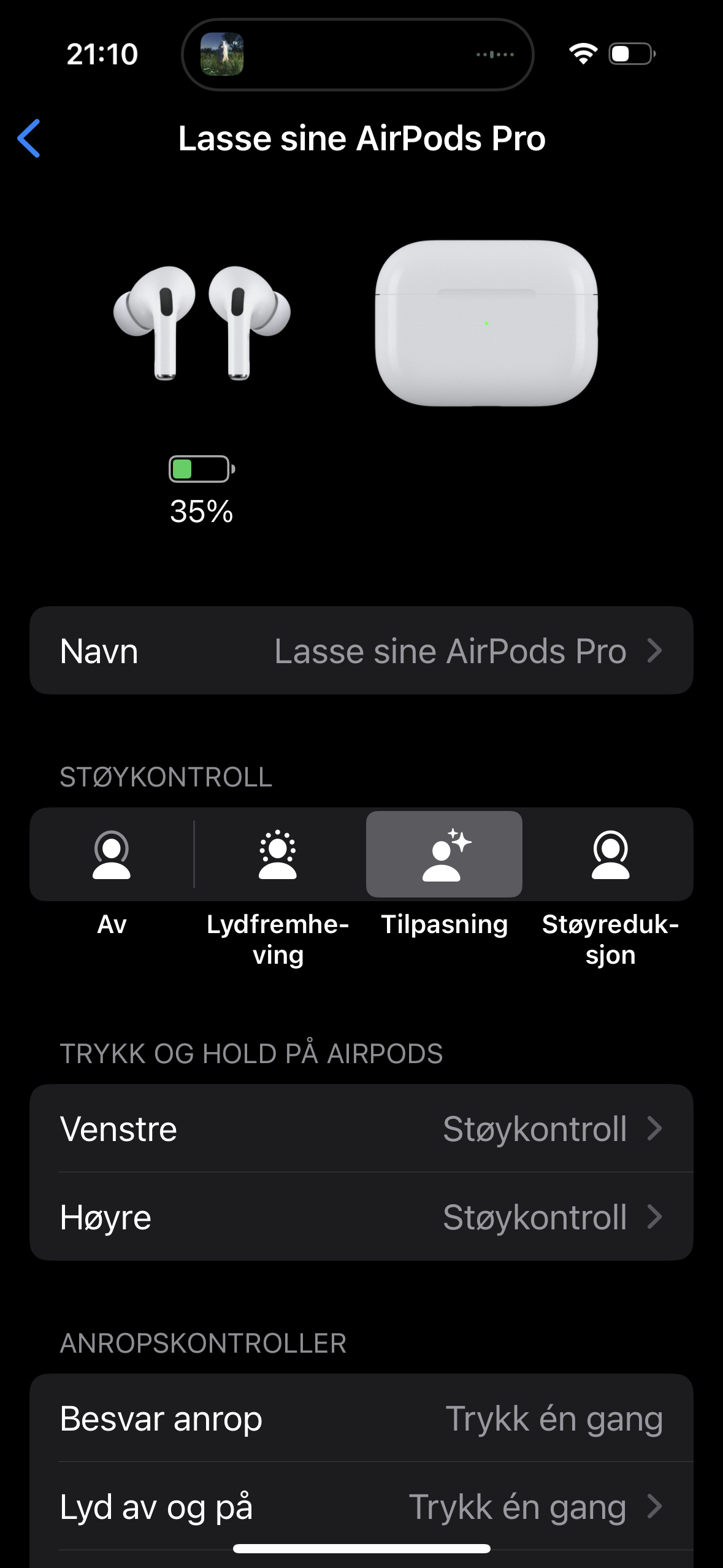 AirPods Pro har Apples Adaptive EQ, som tilpasser lyden til, hvordan hørepropperne sidder i øret. Den aktiveres i Bluetooth-menuen og fungerer godt, men efter min mening er den ikke nogen god erstatning for en manuel EQ, som man selv kan tilpasse og gemme som en præference.