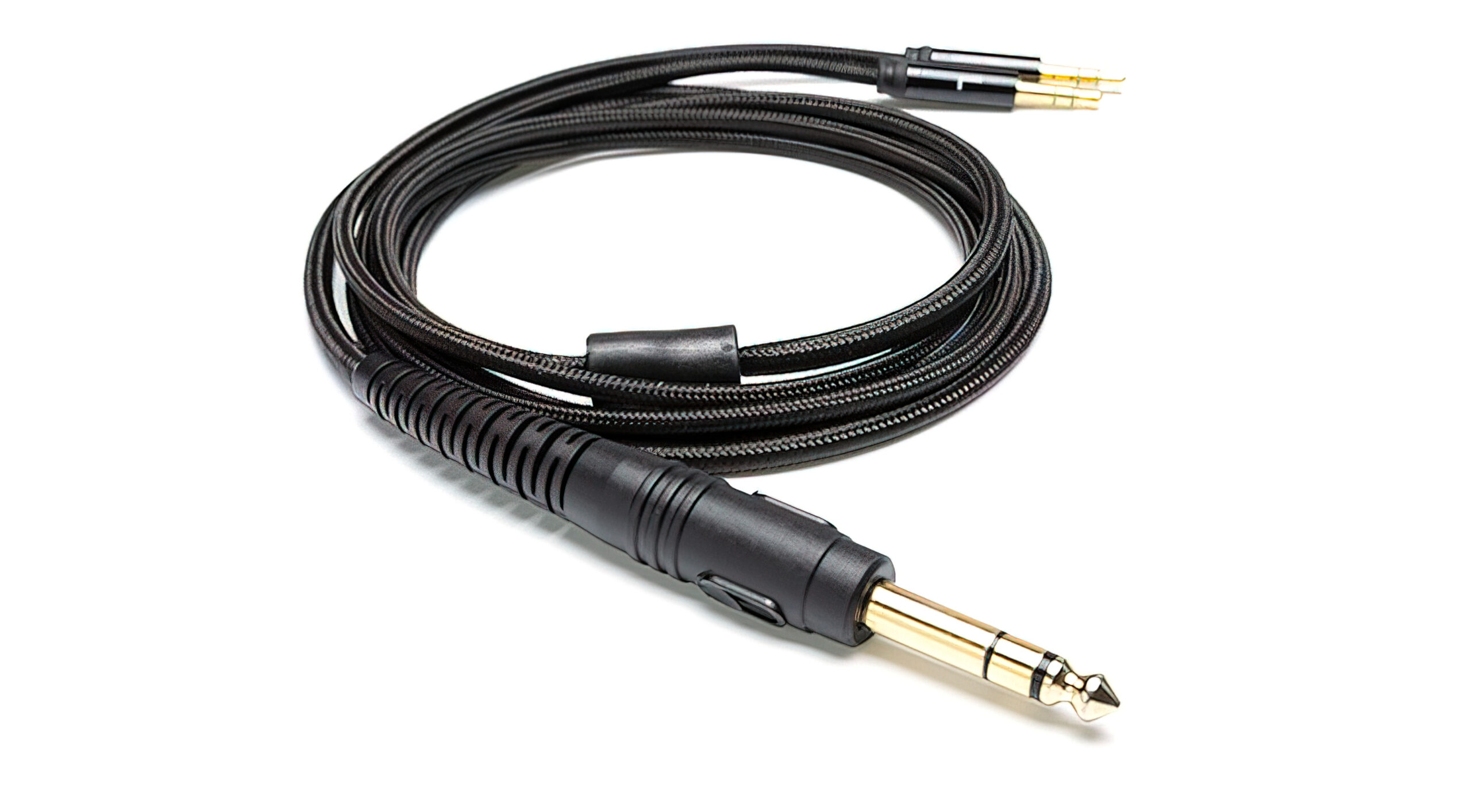 Det udskiftelige kabel har 3,5 mm stik ind i ørekopperne og 6,3 mm stik i den ende, der går ind i forstærkeren. Det er nemt at få fat i andre kabler, hvis man har brug for mere længde eller balanceret tilslutning.