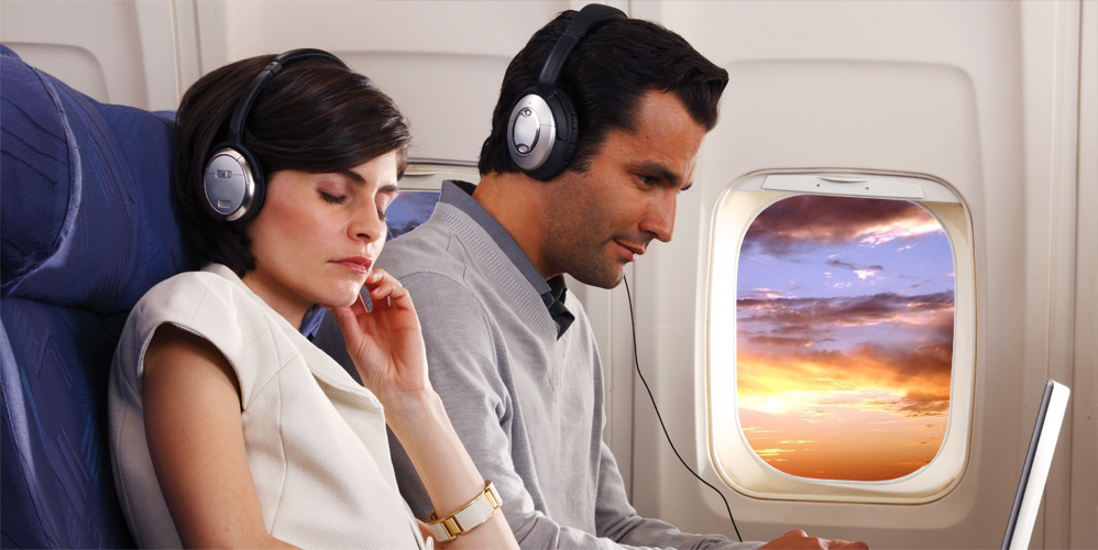 Lange flyrejser er virkelig trættende. Ikke nok med at man sidder klemt inde mellem fremmede, spiser dårlig mad og indånder tør luft. Man udsættes også for konstant støj. I længden bliver man træt, og det gør kun humøret værre. Og hvis man tager hovedtelefoner på for at høre musik, er man nødt til at skrue så højt op for lyden, at det alligevel ikke virker afslappende. Hvad gør man så?