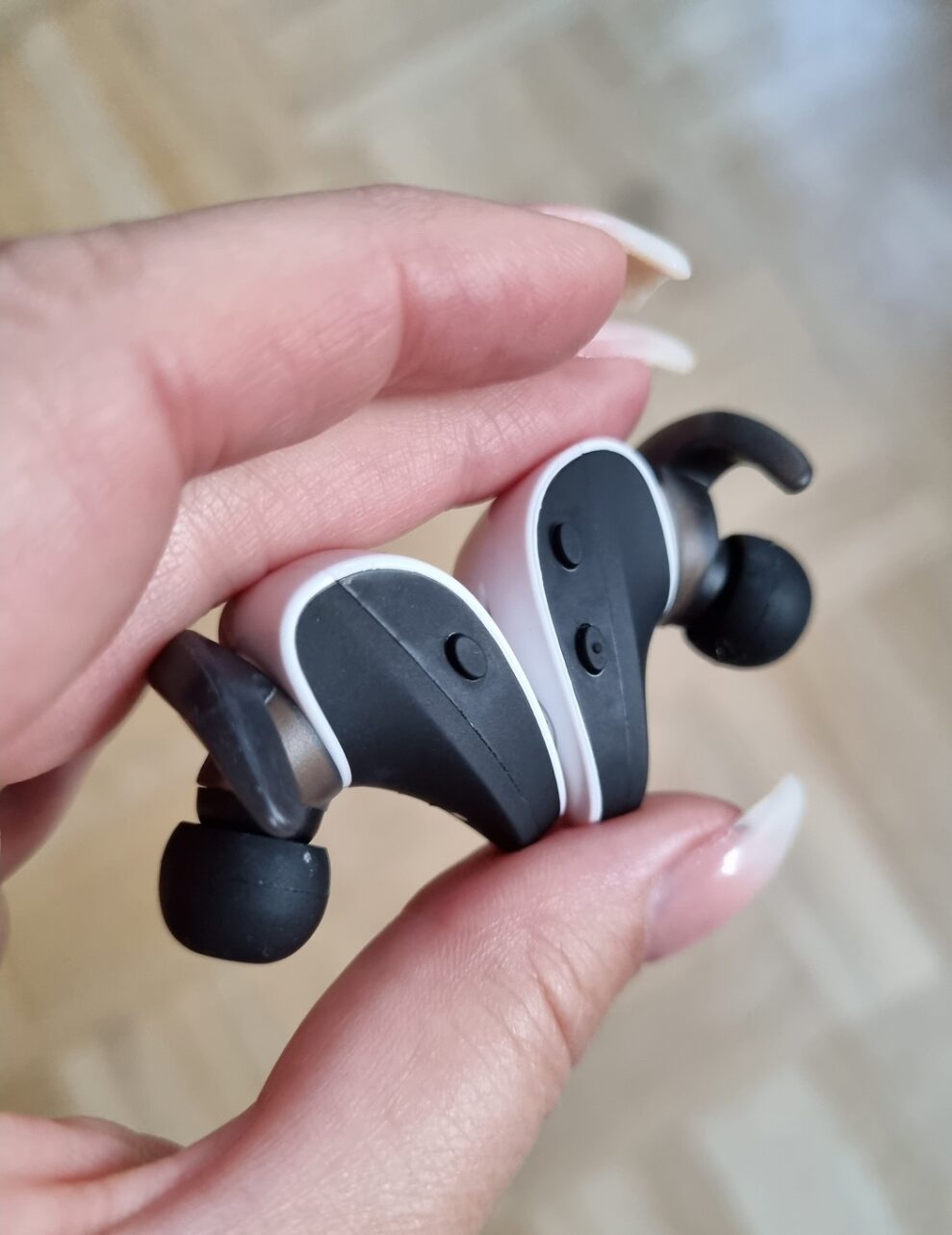 Dette er faktisk den største og tungeste høreprop, jeg har testet, men takket være konstruktionen, hvor selve ‘huset’ på høreproppen hænger udenpå øret, generer det mig overhovedet ikke. Her er ingen rigtig touchfunktion, men begge hørepropper er forsynet med knapper. Højre prop har to knapper på den ene side, mens den venstre kun har fået én.