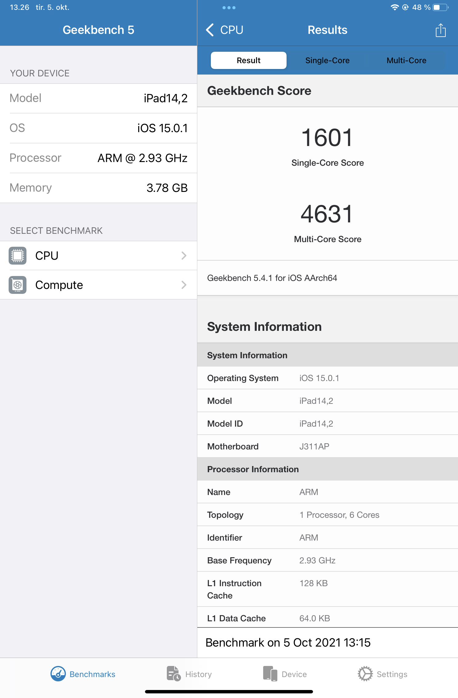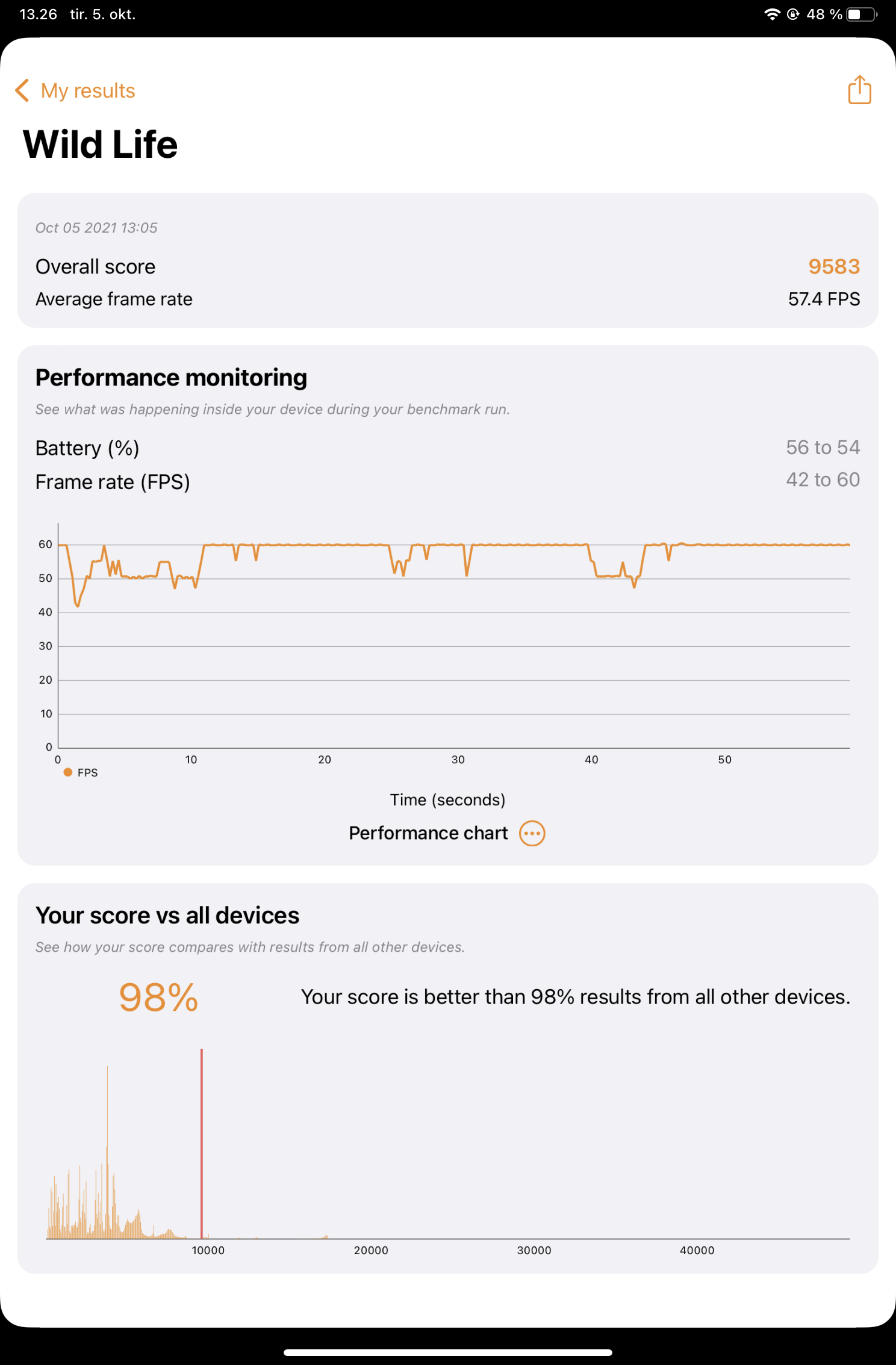 Hvis vi f.eks. sammenligner benchmark-resultaterne for iPad mini med ditto for Samsung Galaxy Z Fold 3, der kommer med Snapdragon 888, ser tallene ud som følger: