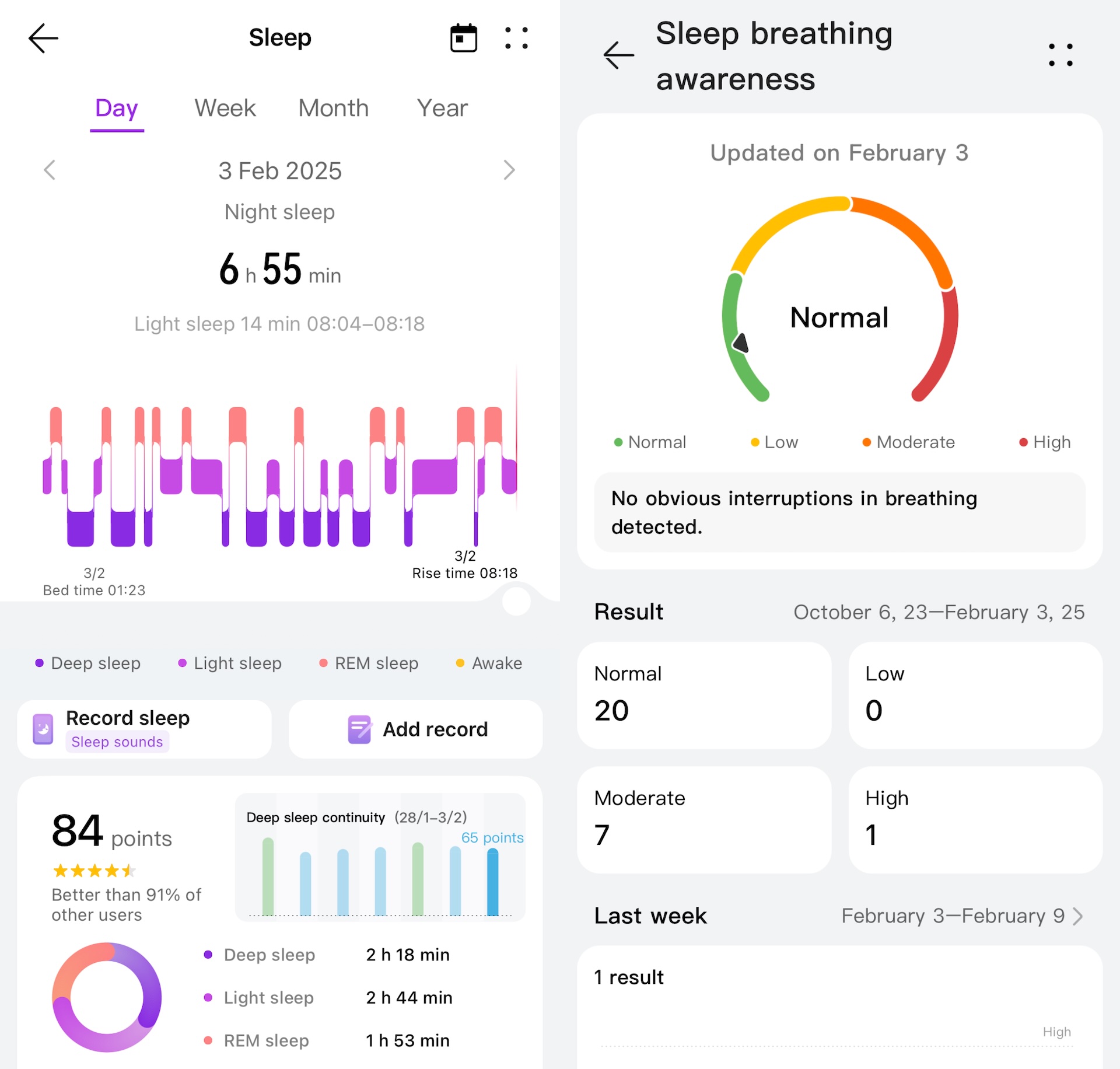 Vi har til gengæld brugt uret meget til at holde styr på søvnen, der faktisk har sin egen søvnovervågningsfunktion. Ud over at forsøge at måle søvnfaser holder den også styr på puls, iltning og vejrtrækning. Den skulle blandt andet kunne registrere søvnapnø, men det var lidt forskelligt, om det lykkedes eller ej. Vi er dog meget glade for, at den måler så mange forskellige aspekter af helbredet og sammenfatter dem på en forståelig måde, så man hurtigt kan se, om der er noget galt, eller om der er en tendens i den forkerte retning.