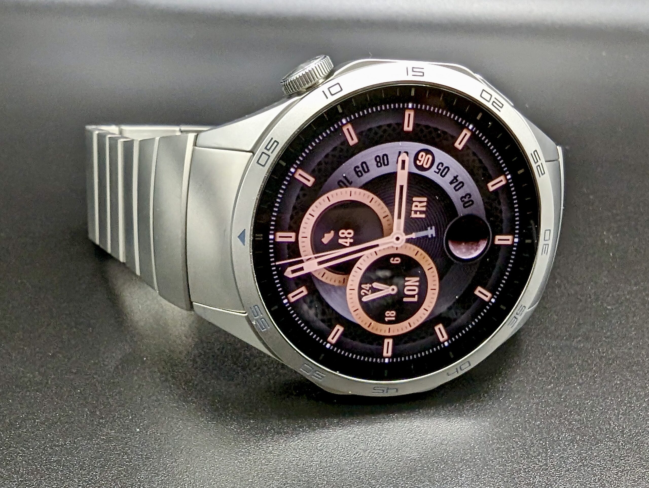 Det er ikke et lille og let ur med sine 126 gram inklusive stålremmen, sammenlignet med de 77 gram, som f.eks. Apple Watch Series 9 med en Milanese loop-rem vejer. Selvom man vænner sig til det, mærker man, at man har et ur på håndleddet. Men stålremmen er alligevel behagelig at have på, og man kan nemt tilføje eller fjerne led for at få tilpasset den rette størrelse. GT 4 er bestemt et moderigtigt og stilrent ur, som man ikke behøver skamme sig over at have på, uanset om man er iklædt jeans eller jakkesæt. Vi forstår, hvorfor lanceringen af den havde sloganet ‘Fashion Forward.’ Og alligevel er dette den mest maskuline model.
