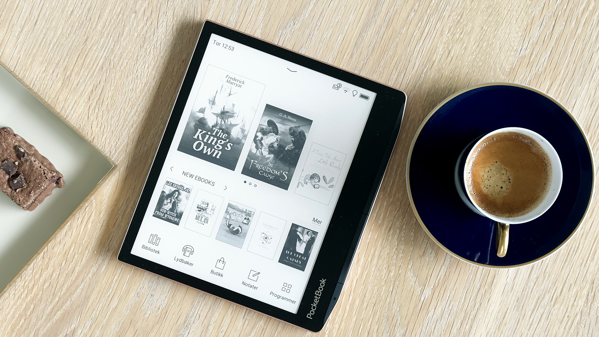 Den nye PocketBook Era er meget mindre. Mere Kindle-størrelse, om man vil, med en 7-tommers skærm, og en vældigt god en af slagsen. Med endnu højere opløsning, justerbar lysstyrke og farvetemperatur. Baggrundslyset kan også slukkes. Fint når man læser bøger i bælgmørke.