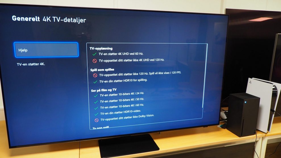 I og med at Samsung-skærmen må nøjes med 60 Hz billedfrekvens, var vi lidt nysgerrige efter, hvordan den ville håndtere krævende konsolspil som Dirt5 og Gears5 (multiplayer-tilstand) fra Xbox Series X. Begge disse spil er tilgængelige med op til 120 billeder i sekundet, men denne tilstand understøttes ikke af Samsung Q700T, hvilket vi også fik bekræftet i Xbox-opsætningsmenuen.
