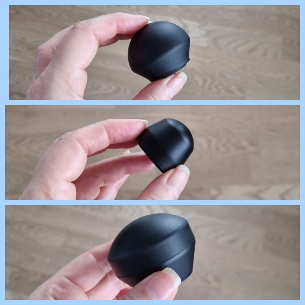 Theragun mini er lidt mere sparsommelig med tilbehøret end konkurrenterne og sender kun tre massagehoveder med. Herunder et som de kalder standardkuglen og et som minder om en tommelfinger. Alle tre føles lidt mere fleksible, blødere og lidt mindre “plastikagtige” end dem, der følger med de andre testdeltagere.