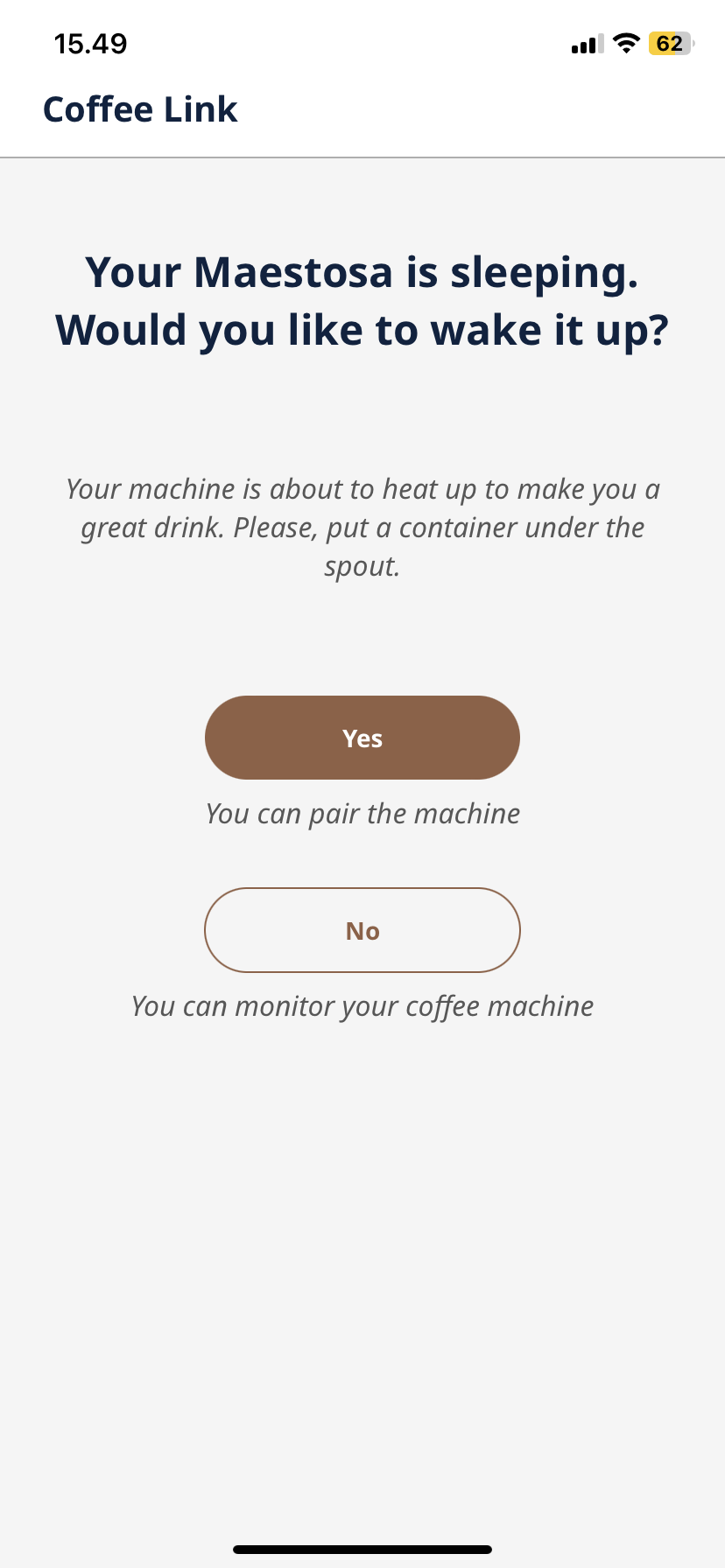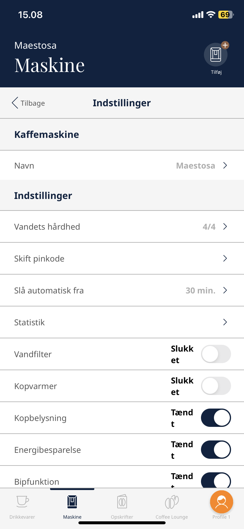 App’en forbinder via Bluetooth, og man kan sagtens tænde og slukke maskinen via Coffee Link. Der er dog ingen mulighed for at forbinde til stemmestyring eller anden automatisering, hvilket er en skam. At vågne op til en opvarmet og klar maskine, er en luksus, man af uvisse årsager bliver nægtet hos både Delonghi, Siemens og Jura.