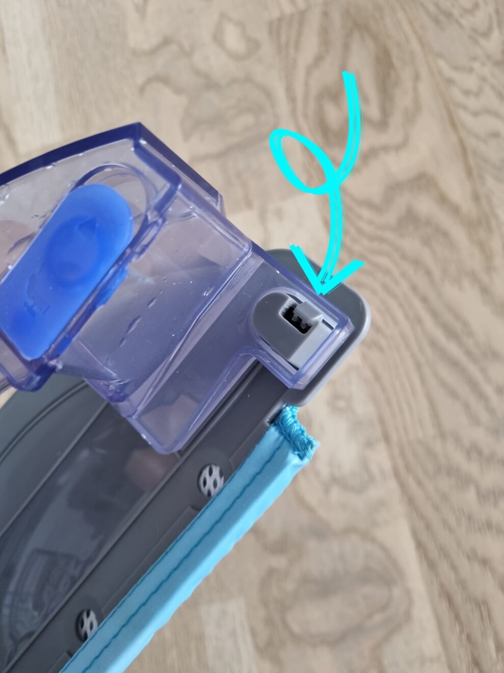 For at vådtørre skal du fylde beholderen, som allerede er i bunden, med vand. Klik derefter “moppebakken” på, og fastgør den fugtige moppe til den. Når det er gjort, kan Egon tørre gulvene, så de bliver lidt friskere og støvfri. I denne tilstand undgår Egon at komme på tæpper, så i praksis er der ikke behov for moppefri zoner på tæpper. Men det er lettere sagt end gjort at fjerne moppebakken efter endt arbejde. Jeg var faktisk nødt til at give op i et stykke tid, fordi jeg var bange for at ødelægge den og derfor blev så frustreret. Men til sidst lykkedes det – spørg mig bare ikke hvordan!