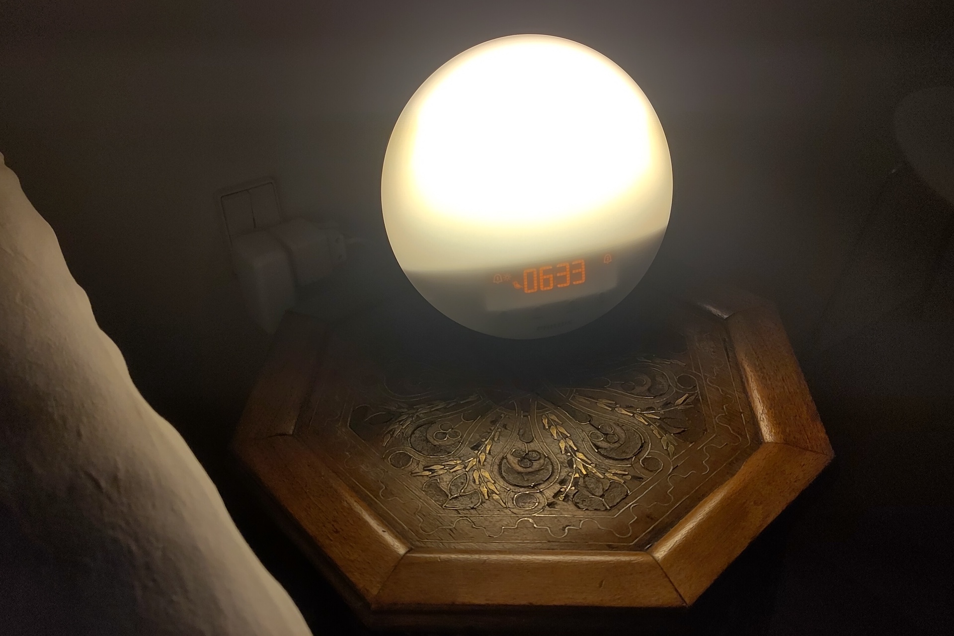 Første nat med Philips er en oplevelse. SmartSleep Wake-Up Light HF3521/01, som er denne Philips’ wake-up-light-models fulde navn, har nemlig sine særheder.