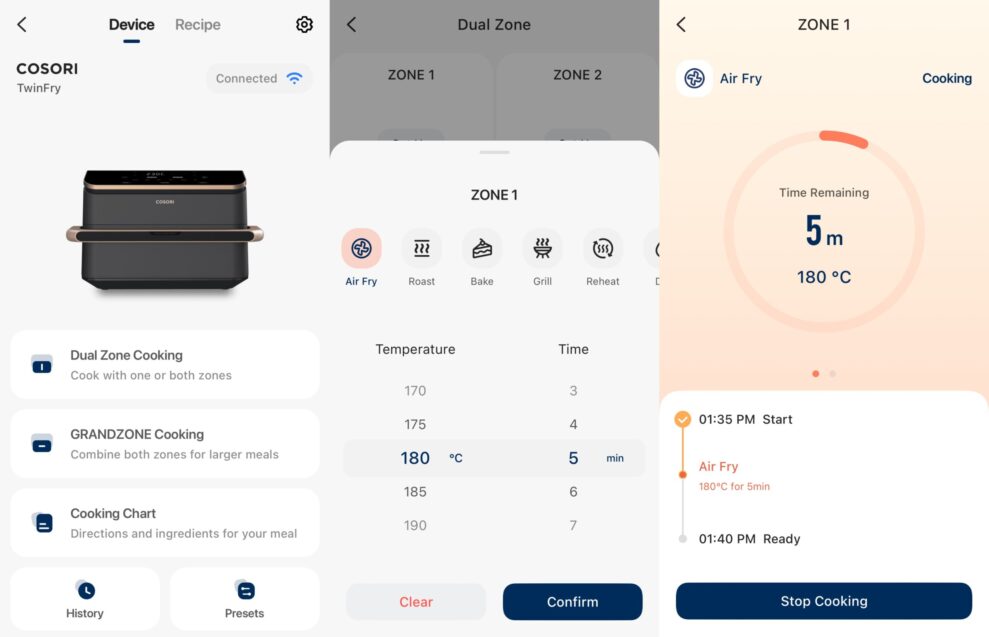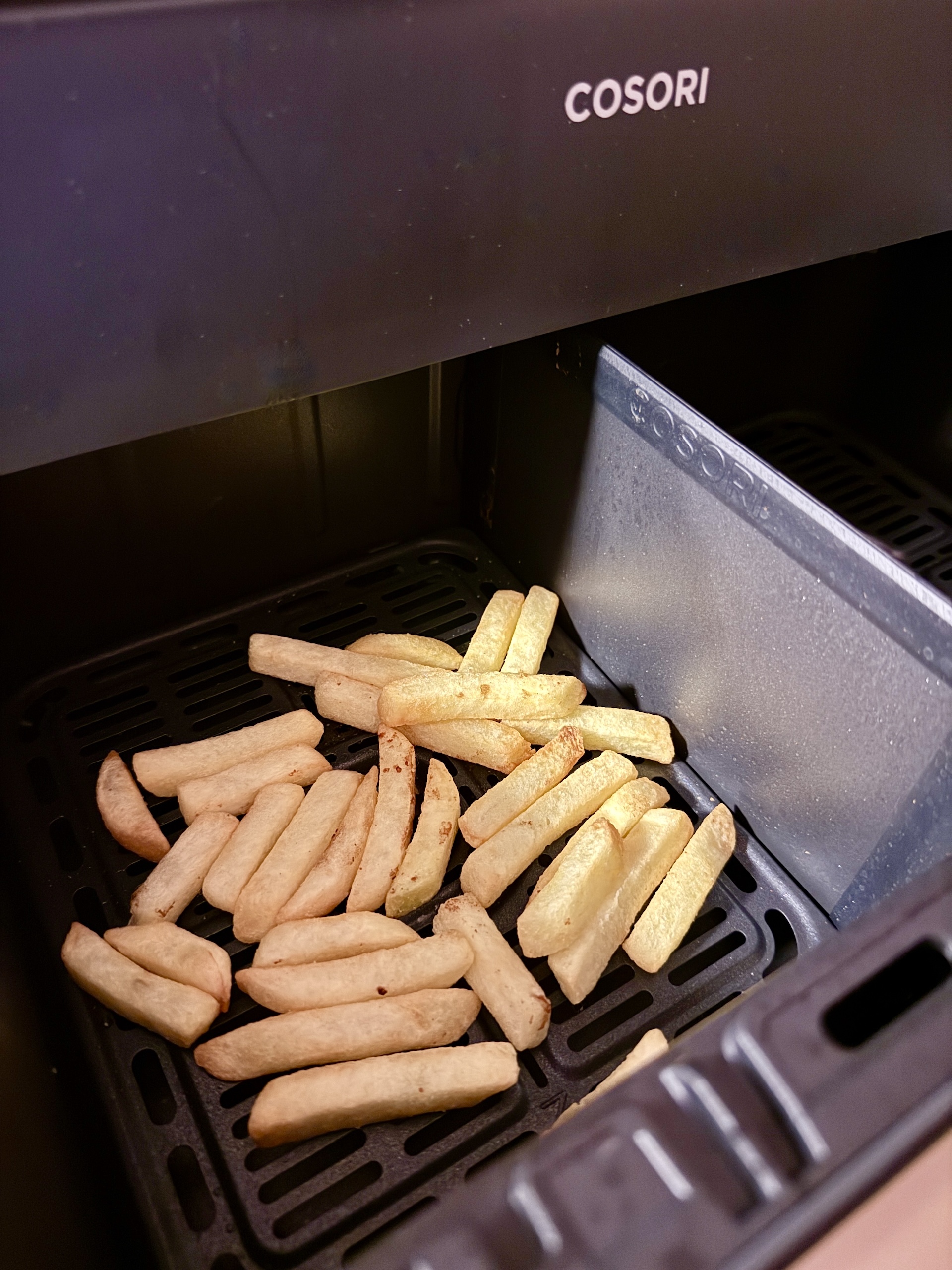 Cosori Dual Blaze TwinFry føles som et gennemtænkt apparat. Kurven er robust, og de to halvdele er ordentligt adskilt, og alt tåler opvaskemaskine. Touchpanelet er let at forstå, og vi kan godt lide, at man vælger tilberedningsmetode i stedet for mad ved hjælp af de hurtige knapper. Det er endnu nemmere med app’en, hvor man kan omprogrammere knapperne og følge med i tilberedningen fra sofaen. Opvarmningen er hurtig, og vi var tilfredse med resultatet af madlavningen.