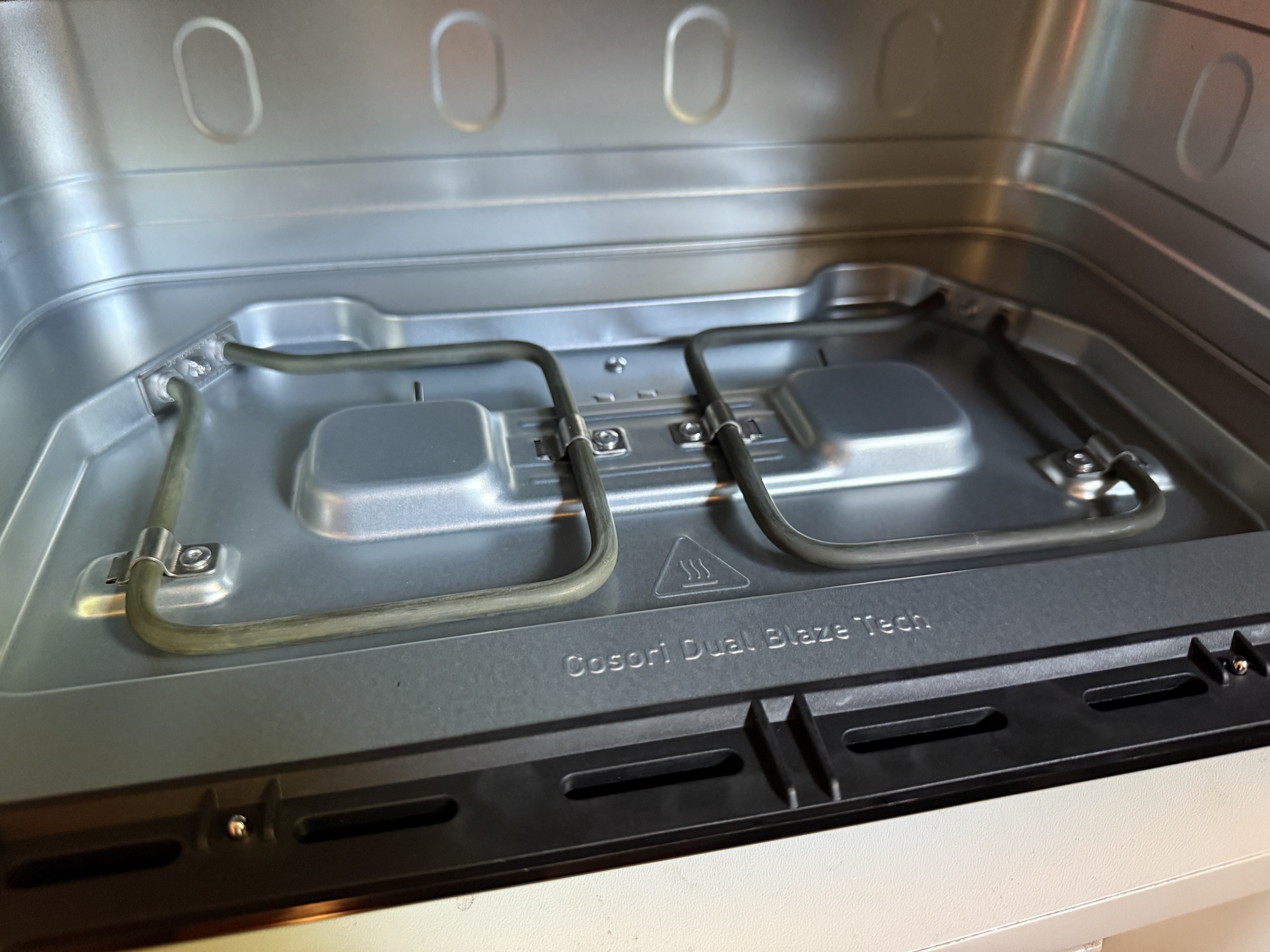 Twinfry i navnet er let at forstå, mens Dual Blaze betyder, at den også har varmeelementer i bunden af apparatet. Det hævdes at gøre madlavningen mere effektiv, men vi forstår ikke rigtig hvordan, da de nederste elementer kun opvarmer bunden af kurven. Det siges, at man skal rengøre elementerne, men ikke hvordan, selv om en almindelig opvaskebørste fungerede godt for os. Både kurven og grillen siges at kunne gå i opvaskemaskinen, hvilket vi sætter pris på.