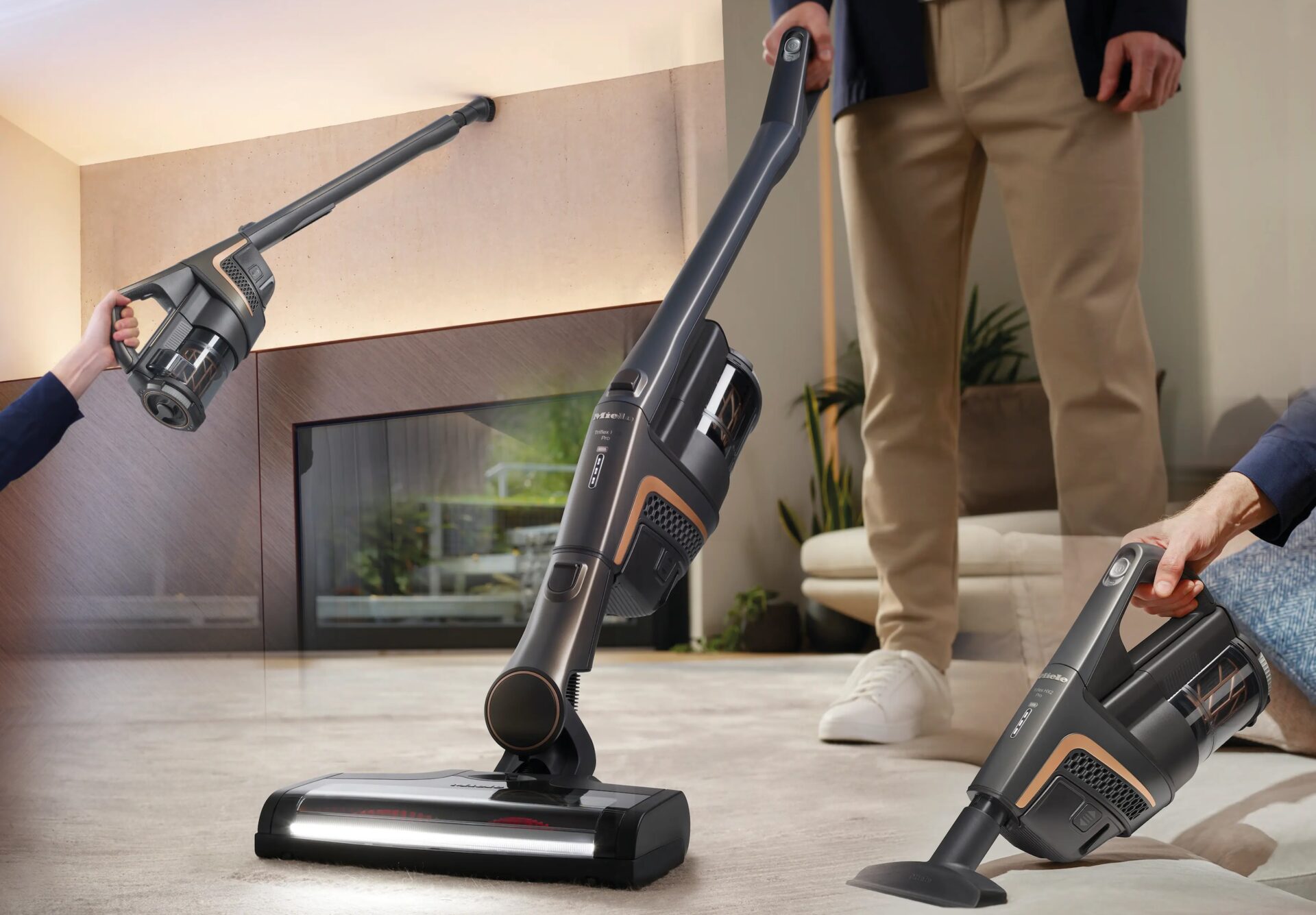 Mieles Triflex-koncept er genialt, da støvsugeren kan konfigureres, så den er nem at komme til på besværlige steder eller giver en mere behagelig støvsugning. Så kan man også sætte støvsugeren ned uden støtte. Vi kan også godt lide, at man kan tage tilbehøret med sig, og at batteriet holder længe. Motormundstykket sætter sig dog fast på tæpper, og man kan ikke afmontere motormundstykket til møbler og rengøre det. Derudover føles alt overraskende plastikagtigt i forhold til prisklassen.