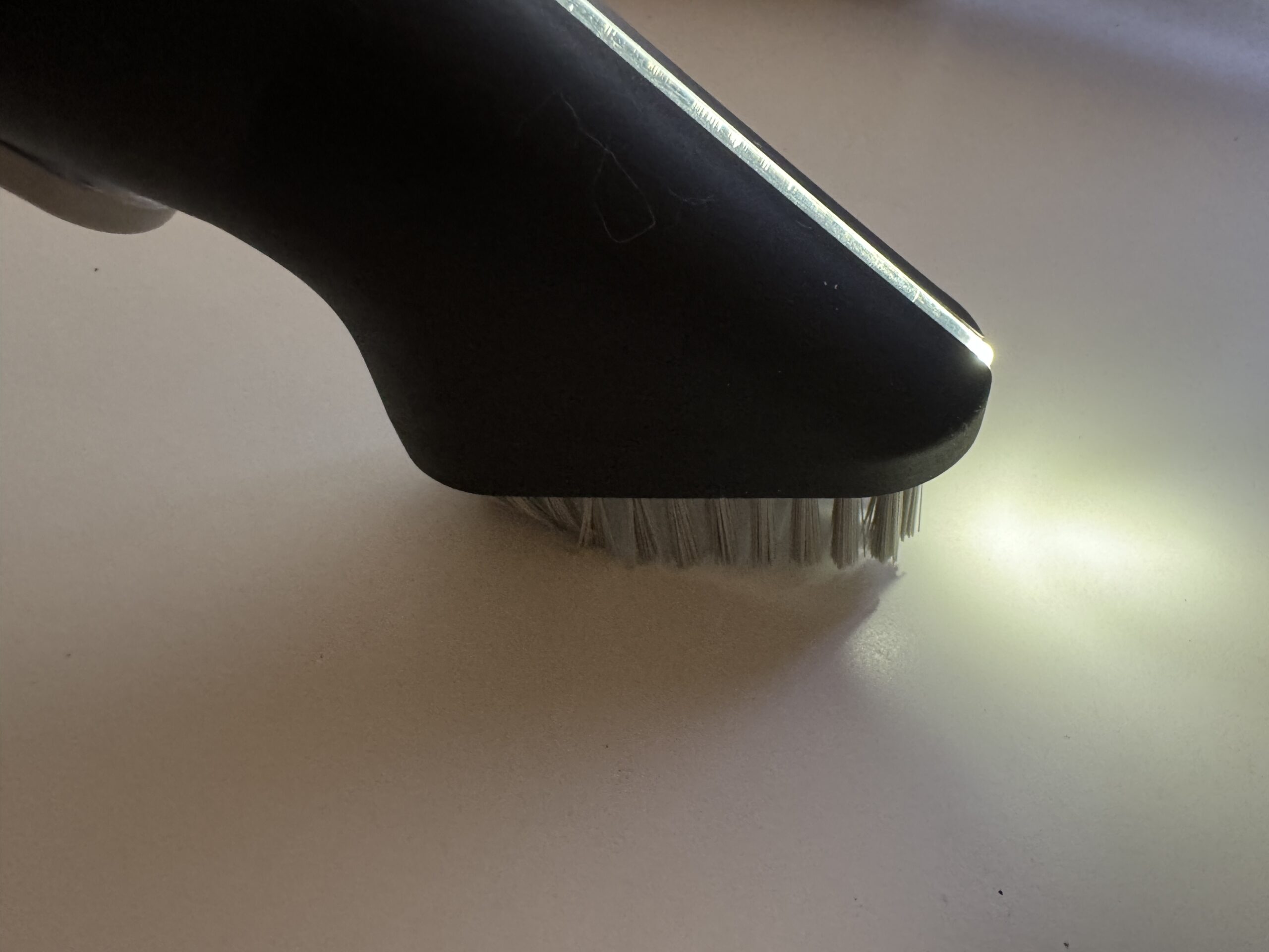 Vi er tilfredse med maskinens byggekvalitet med en stang i metal og solide plastmundstykker, der virker solide. Mundstykkerne har robuste knapper til at frakoble dem, og det er nemt at skifte tilbehør, uden at noget sætter sig fast. Det, der gør dem unikke, er, at næsten alle dyserne er oplyste gennem et smart system med et lys i motorholderen, som ledes af fiberoptik ned i tilbehøret! Vi kan ikke understrege nok, hvor praktisk det er at støve af, når man faktisk kan se, hvad man laver, selv i mørke hjørner.