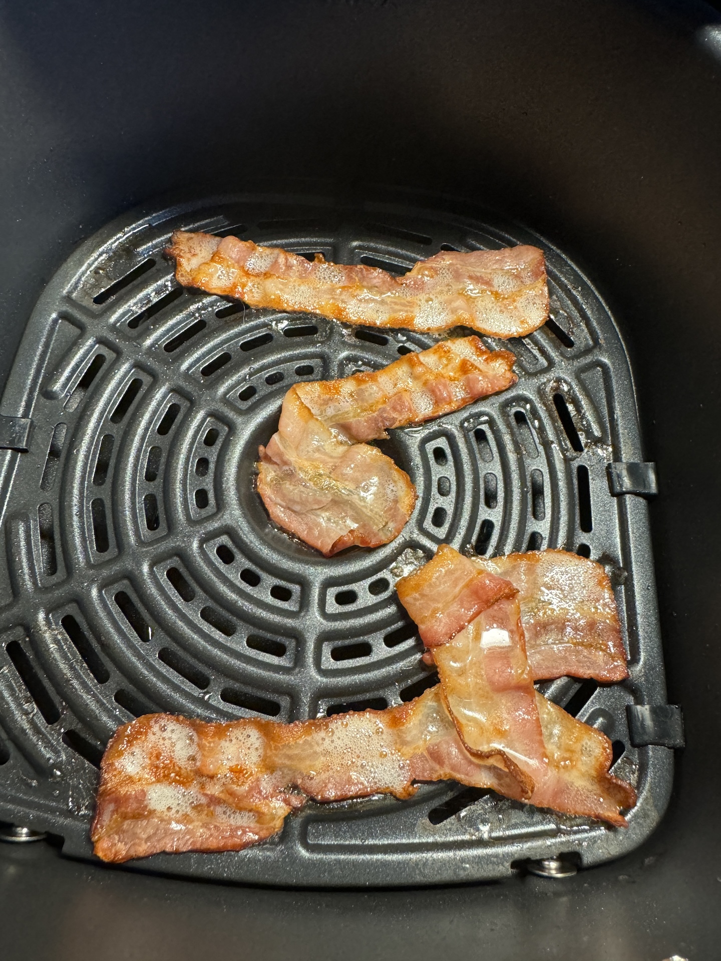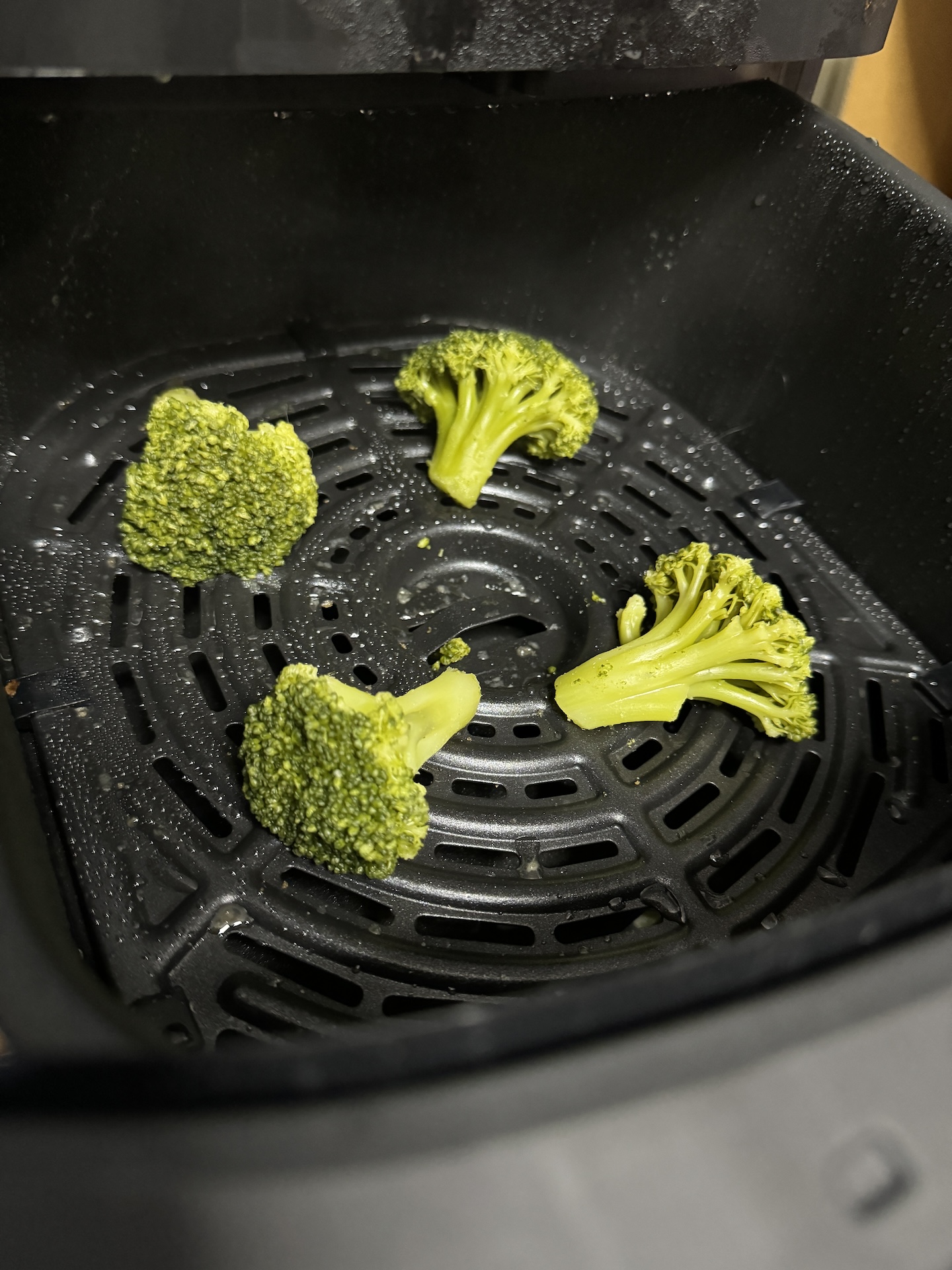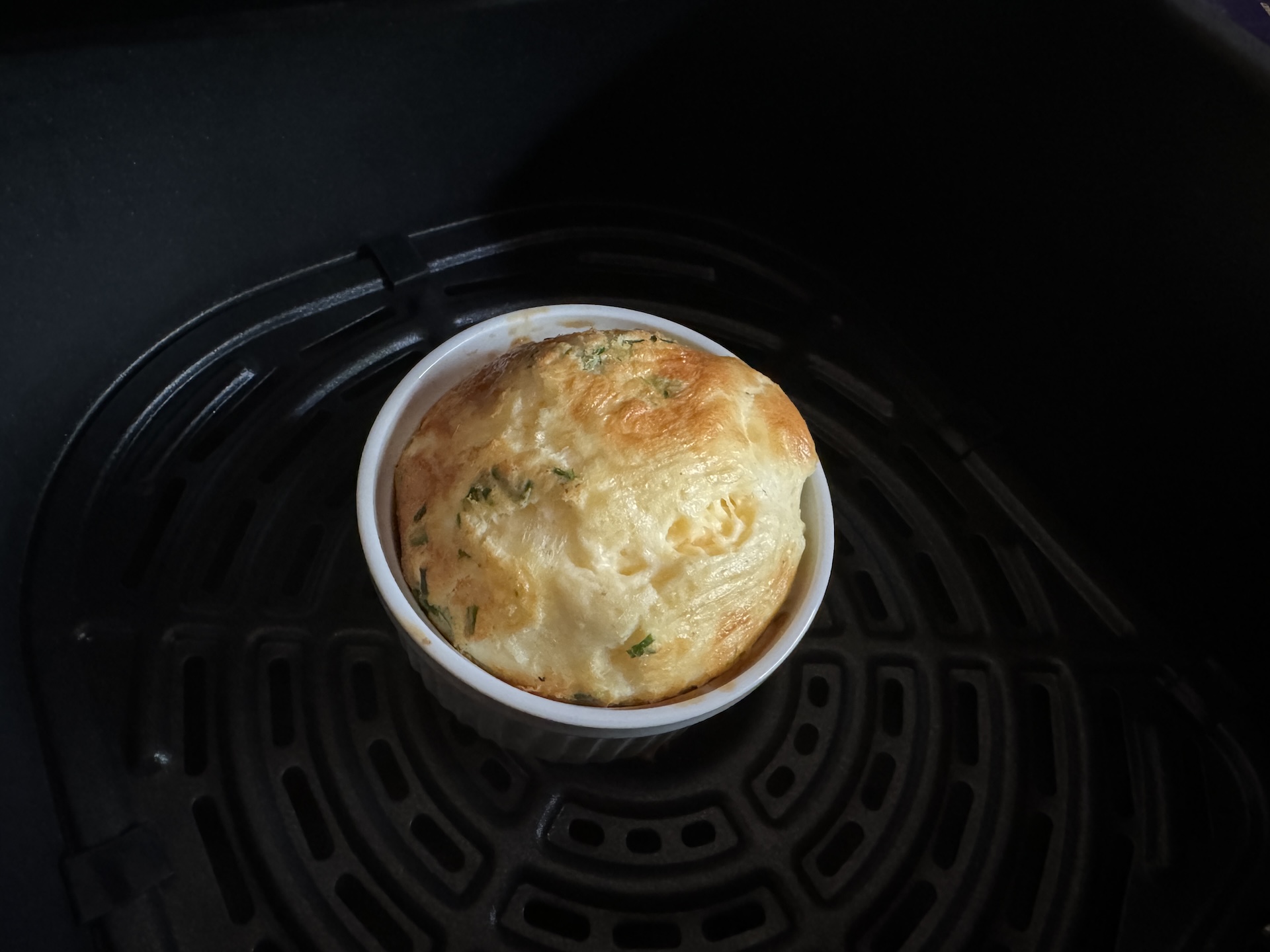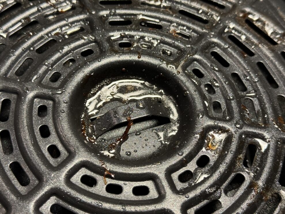 Pommes frites-programmet er alt for langt og resulterer i brændte kartofler. Tilberedning af omelet gik godt, fordi vi brugte det manuelle program og erfaring. Men med bacon opdagede vi ulempen ved fordybningen i midten af risten. Alt, hvad der er tilbage der, er mindre tilberedt, og der er en stor fedtpøl i den. Så vidt vi kan se, er den eneste forskel mellem airfry- og grillprogrammerne, at man lægger en grillrist i bunden og forvarmer den. Slet ikke som grillelementet i en ovn, der producerer intens varme. Resultatet med vores stykke kød var dårligere end med en grillpande på kogepladen. Dampfunktionen er dog fremragende og giver nænsomt tilberedte grøntsager, som bevarer deres sprødhed og farve.